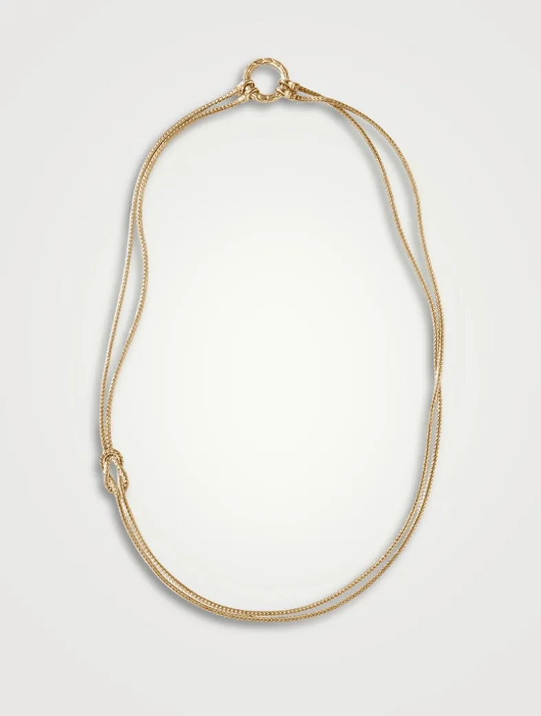 The Love Knot collection is an evolution of the brand’s heritage Icon Chain. This necklace features separately woven chains tied by hand into a binding knot, synonymous with commitment, resilience, and love.