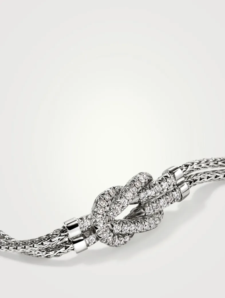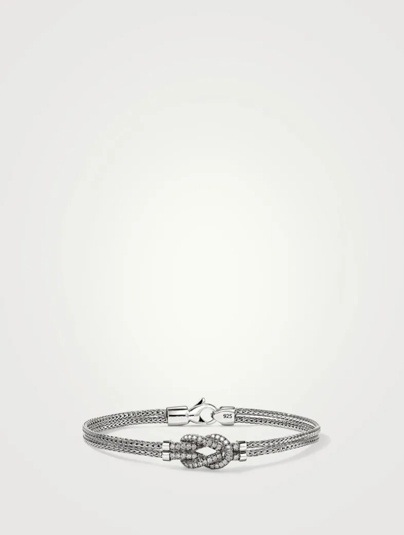 Artisan handcrafted in sterling silver with diamonds, this delicate double row chain bracelet features John Hardy’s signature Love Knot motif.
