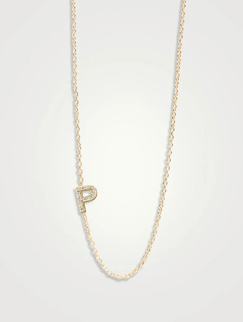 From the Love Letter collection. This personalized necklace features a delicate gold letter with dazzling diamonds soldered onto a gold chain.