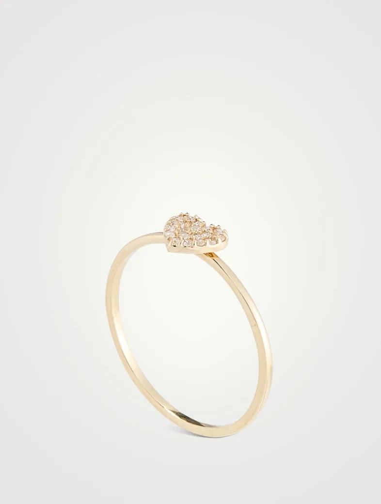 Love Letter 14K Gold Pavé Heart Ring With Diamonds