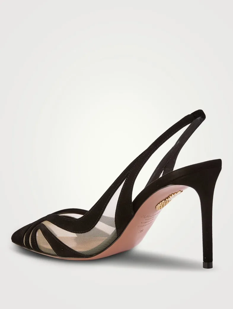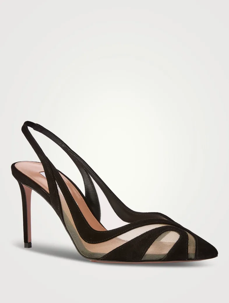 Crafted from wavy foot-framing panels of suede and mesh, the Lune pumps put a fresh spin on the classic silhouette. They have sleek pointed toes and 85mm heels, so you don’t have to reserve them for special occasions.