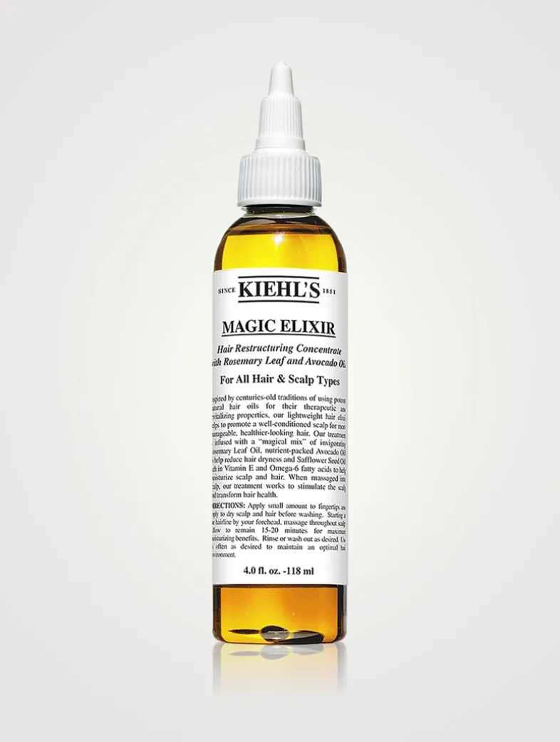 Inspired by centuries-old traditions of using potent, natural hair oils for therapeutic and revitalizing properties, Kiehl’s Magic Elixir Hair Restructuring Concentrate is a lightweight hair elixir that helps to promote a well-conditioned scalp for more manageable, healthier-looking hair. The treatment is infused with a magical mix of invigorating Rosemary Leaf Oil and nutrient-packed Avocado Oil.