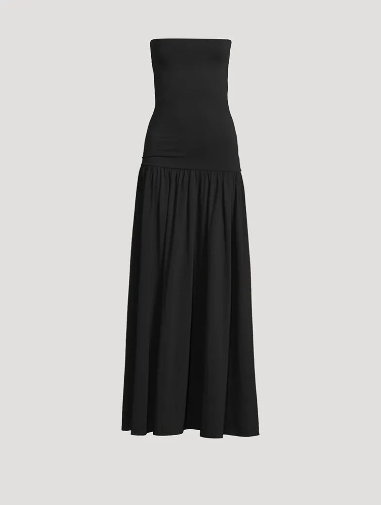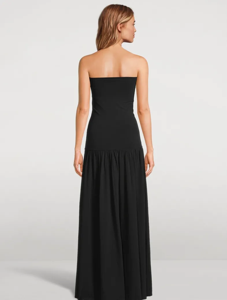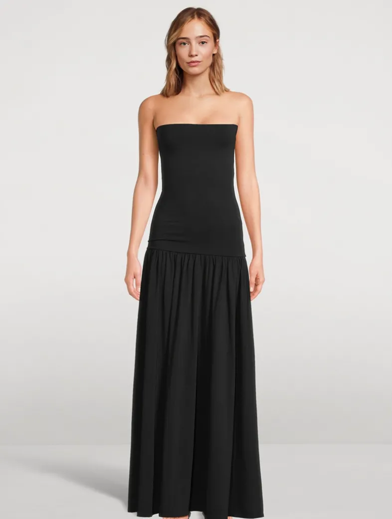 Simple in shape, yet striking in finish, the Marciella maxi dress leaves a lasting expression. Cut in an organic cotton blend with a hint of stretch, the fitted upper is contrasted with a voluminous bottom.