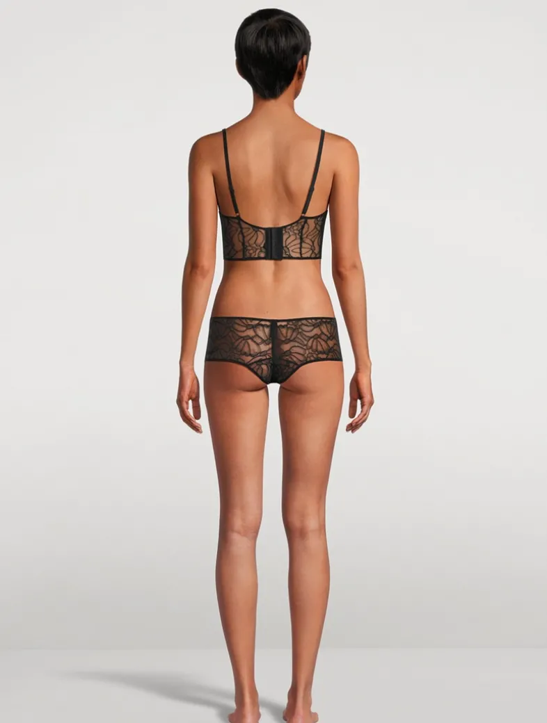 The Marguerite Boy Short in stretch lace is a sexy top drawer staple that is comfortable enough for everyday wear. Crafted from raised lace sourced in France, this brief offers moderate coverage for a cheeky and flirtatious fit.