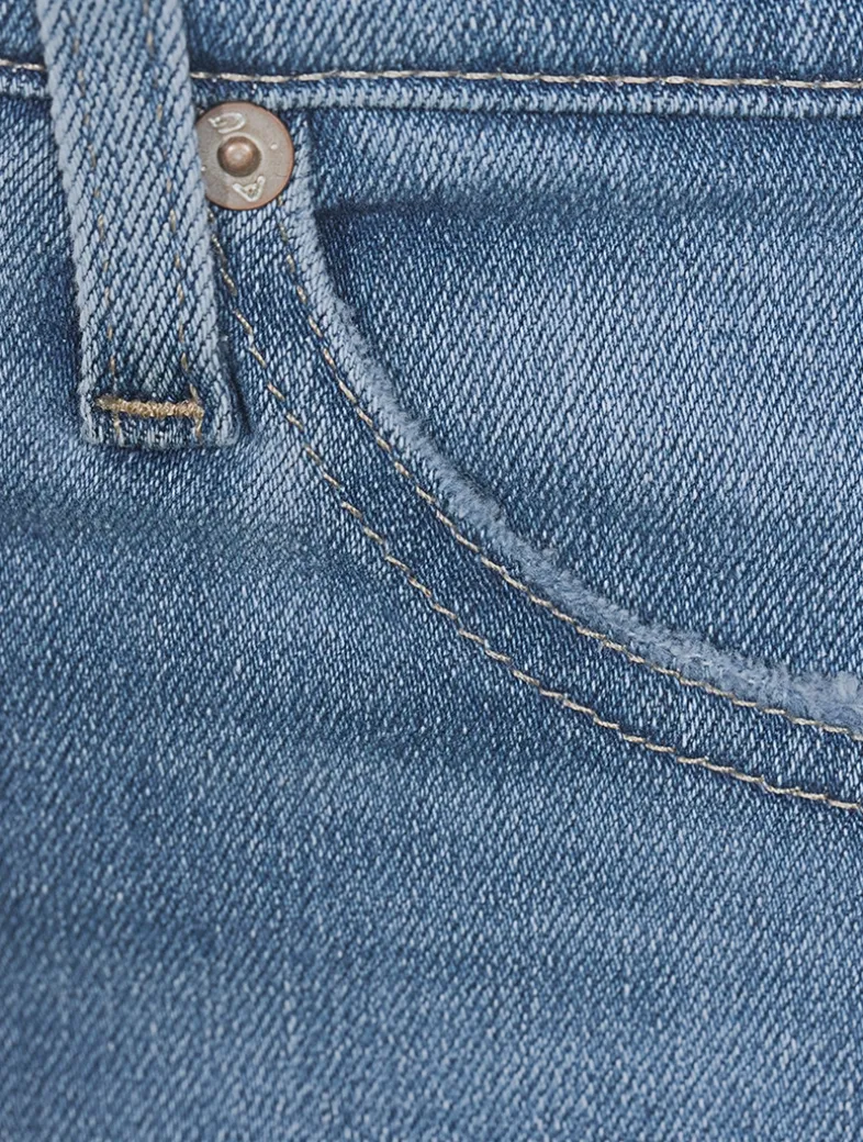 The Mari Crop is a mid-rise jean with raw hems that land above the ankle. This style fits easy around the hips and leads to a straight-leg silhouette that slims at the leg opening. These five-pocket jeans feature a vintage-inspired, stretch denim construction.