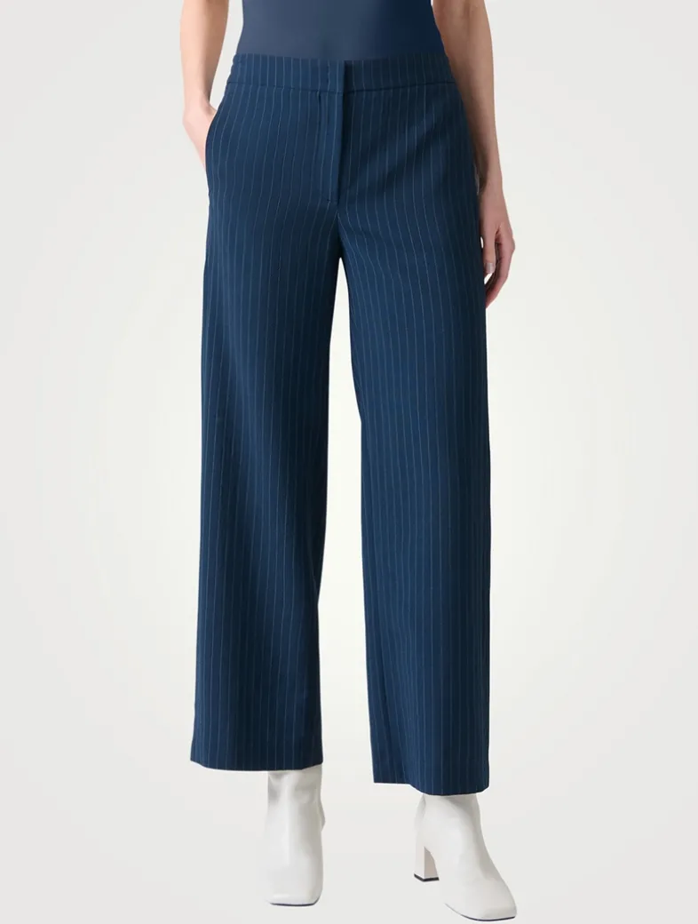 Akris Punto’s Marlon trousers nod to menswear-inspired styles. Crafted from a cool wool crêpe, they have a classic pinstripe print and are cut to a wide, straight leg with an elastic waist and zip closure.