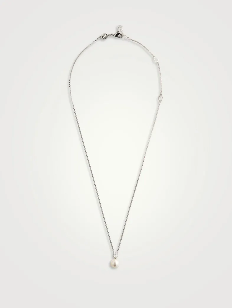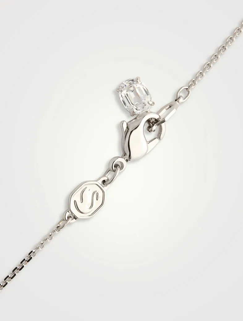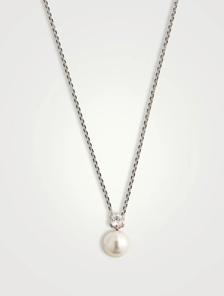 This delicate Matrix pendant celebrates simplicity with a single white Swarovski Crystal Pearl and a round-cut Swarovski Zirconia, elegantly suspended from a rhodium-plated chain.