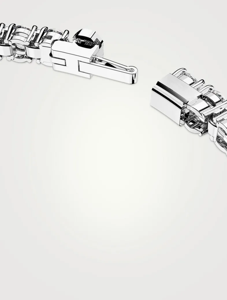 Petite round-cut stones define this bracelet from SWAROVSKI’s Matrix collection. Set in rhodium plated metal, this elegant statement has a hidden barrel clasp for a uniform look.