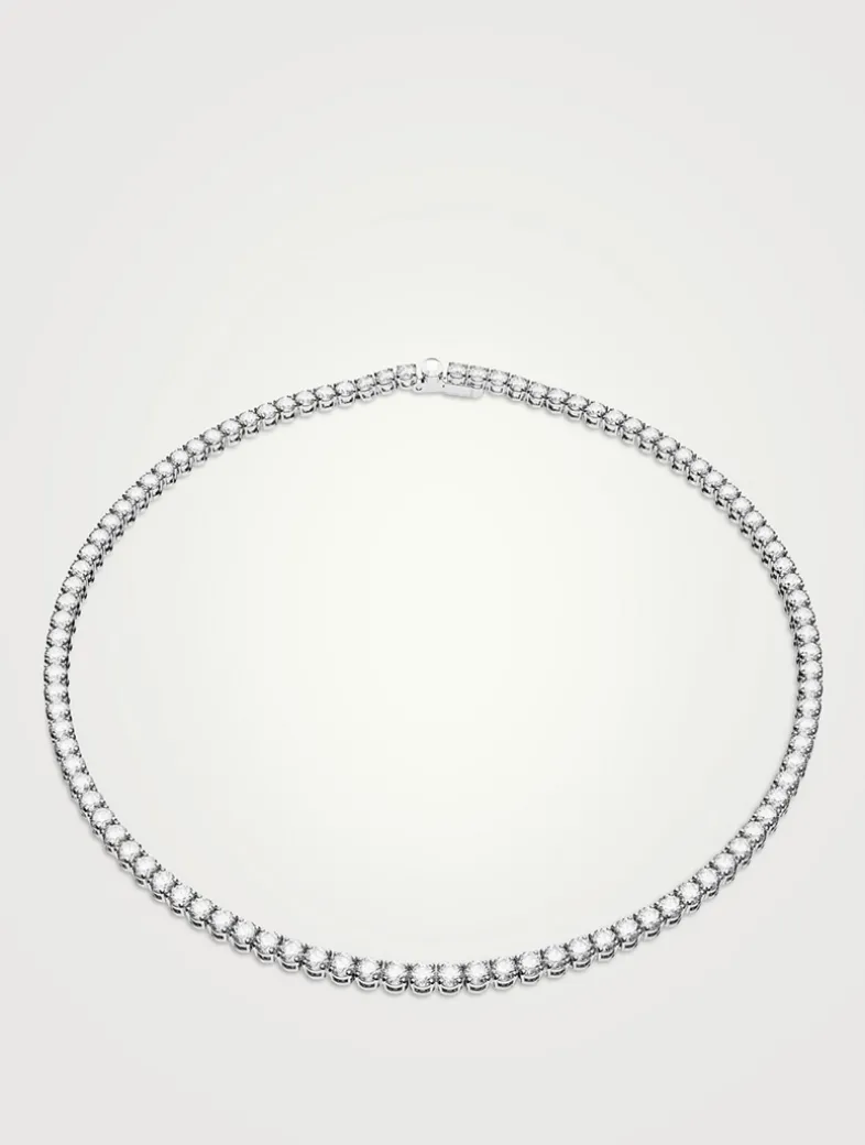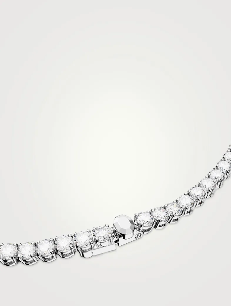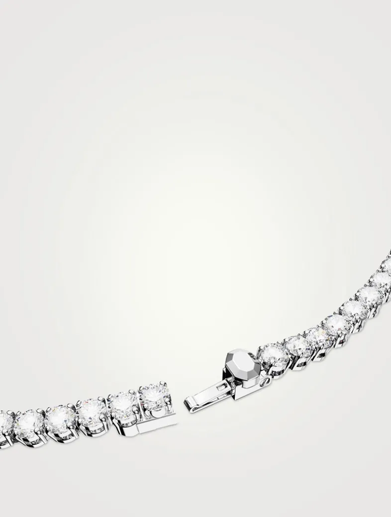 Stations of cubic zirconias stand out in this classic collar necklace. The minimal clasp allows for an unbroken halo of glimmer around your neck.