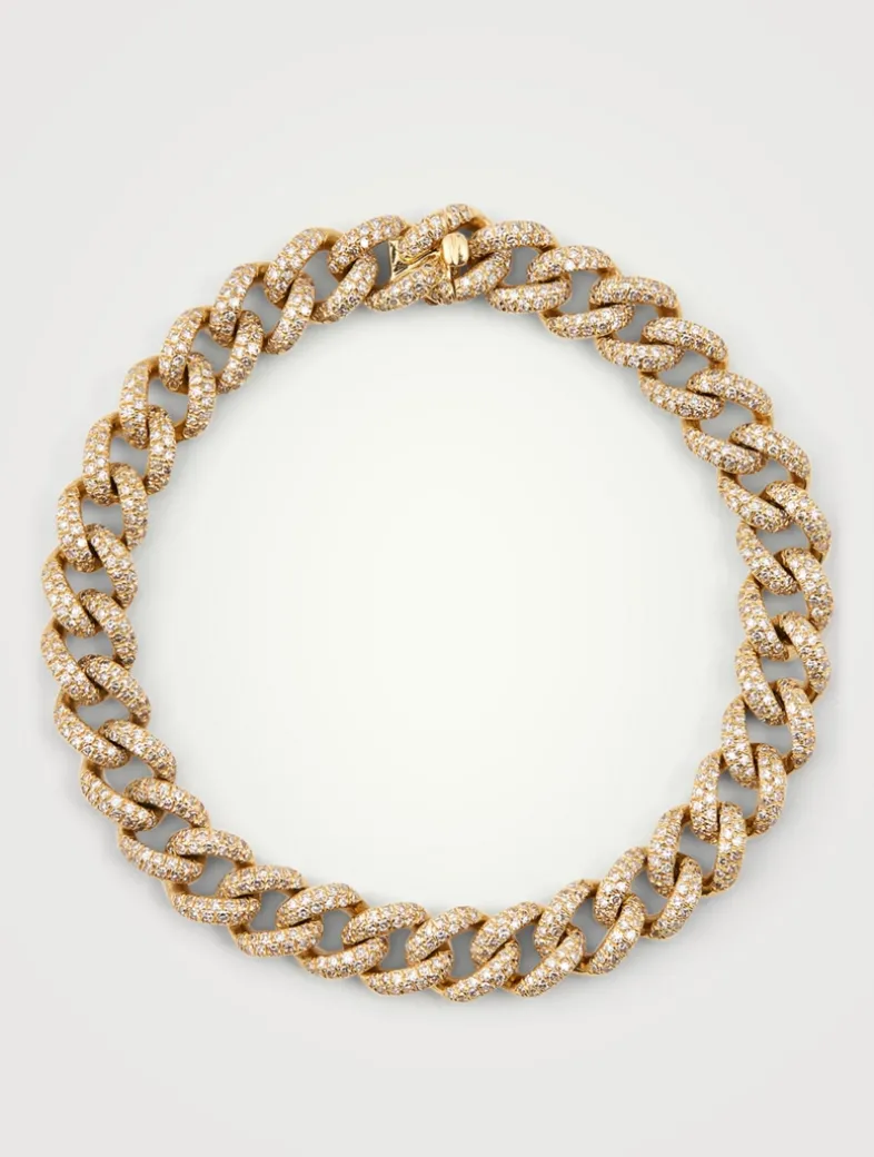 Crafted with interlocking links of 18K gold, this elegant curb chain bracelet is enhanced with sparkling pavé diamonds.