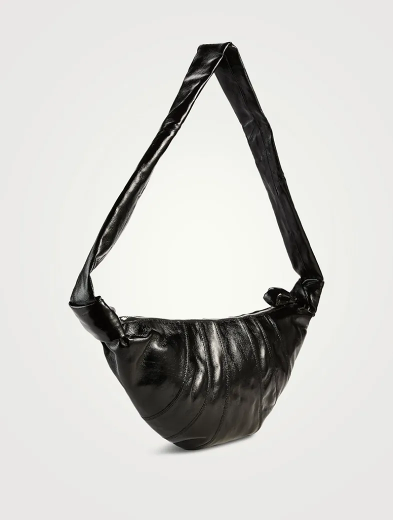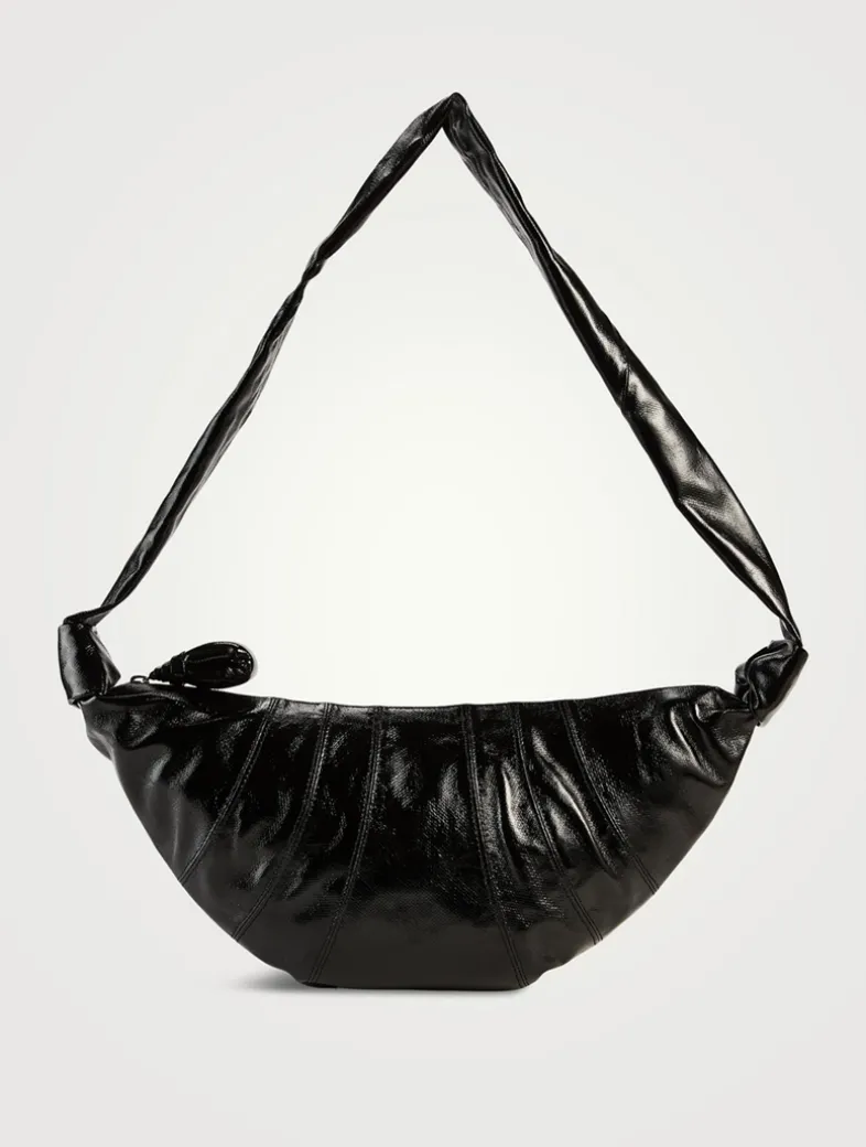 This classic LEMAIRE bag is part of the iconic Croissant family. The Medium croissant is made of coated cotton with a crisp texture and a shiny finish, which was granted a GOT Certification. Its distinctive surface adds a tactile element and contributes to its durability. Inspired by the shape of the eponymous pastry, this vegan bag is achieved through an assembly of top-stitched cut-outs, blending style and functionality. It features a matching looped zip puller and side knot finishings. It can be worn over the shoulder or across the body.