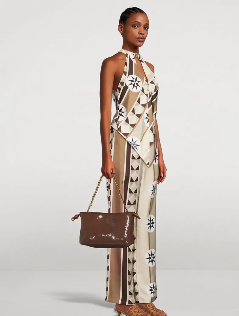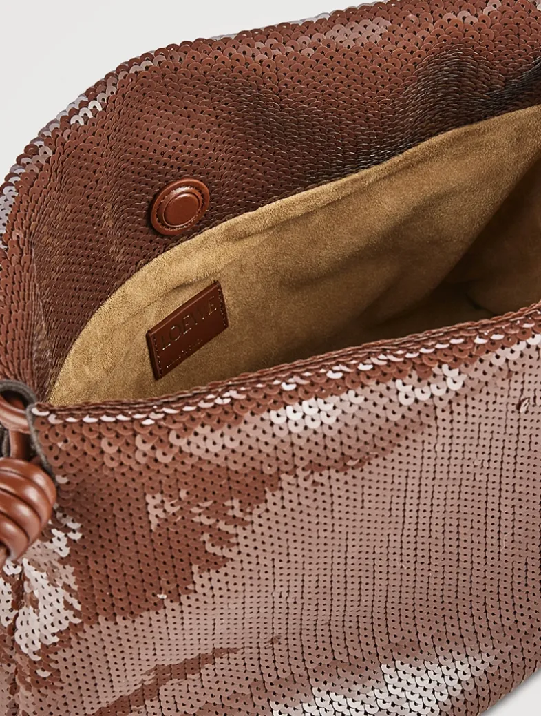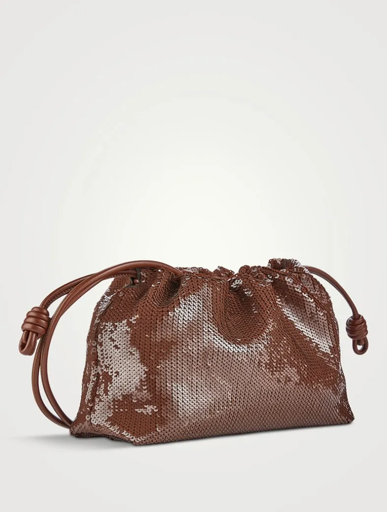 This version of LOEWE’s Flamenco bag is defined by a shimmering sequin design complemented by signature knots at the sides and metal Donut Chain detail.