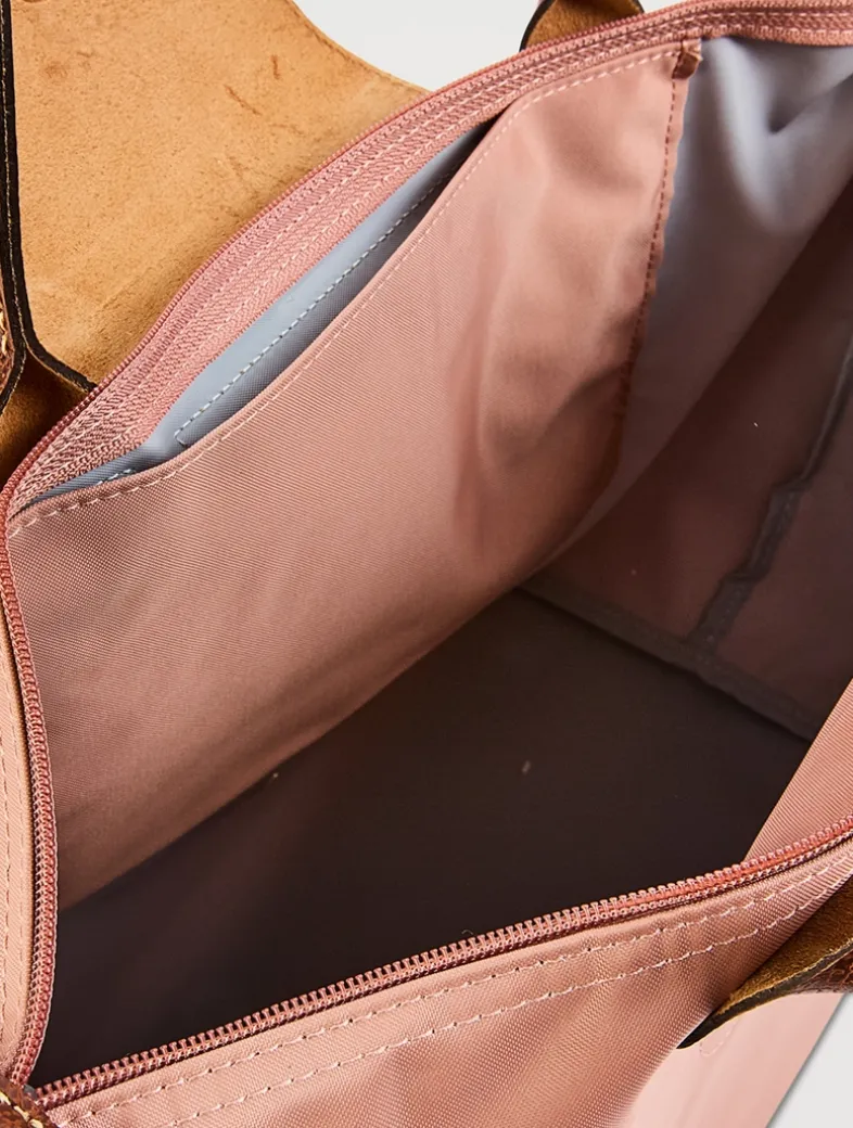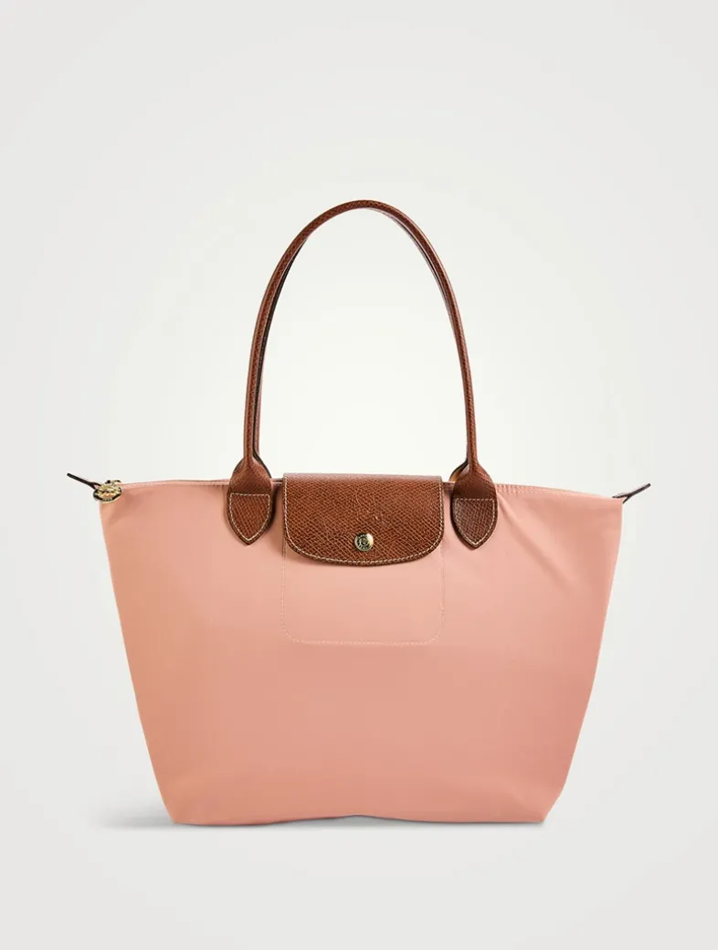 This tote bag captivates you with its minimalist silhouette and compact volume, and can even be folded into the size of a paperback book. Its long handles allow you to wear it comfortably on your shoulder, while its zipper closure ensures the safety of all of your belongings.