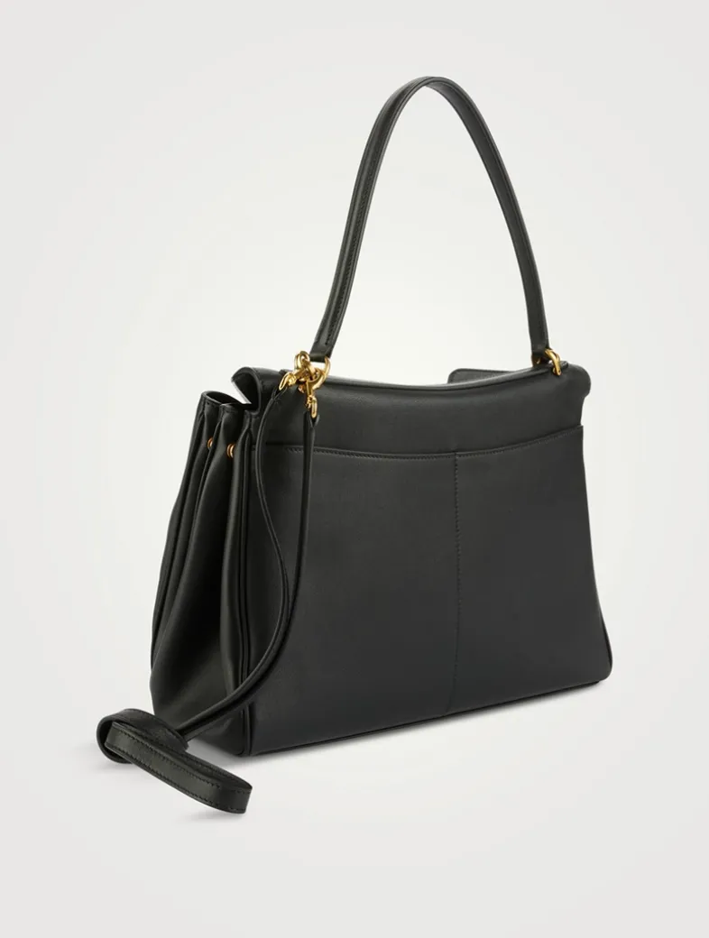 A buttery leather construction and side snaps enhances the slouchy shape of this bag. Roomy enough for you daily essentials, the satchel features one main compartment, one inner zipped pocket, and two flat pockets at the back.