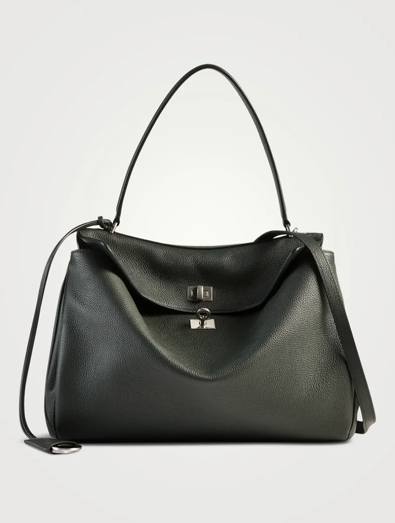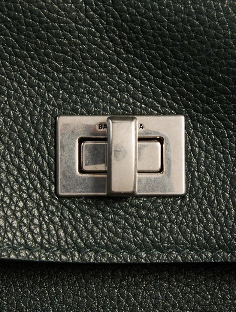 A buttery leather construction and side snaps enhances the slouchy shape of this bag. Roomy enough for you daily essentials, the satchel features one main compartment, one inner zipped pocket, and two flat pockets at the back.