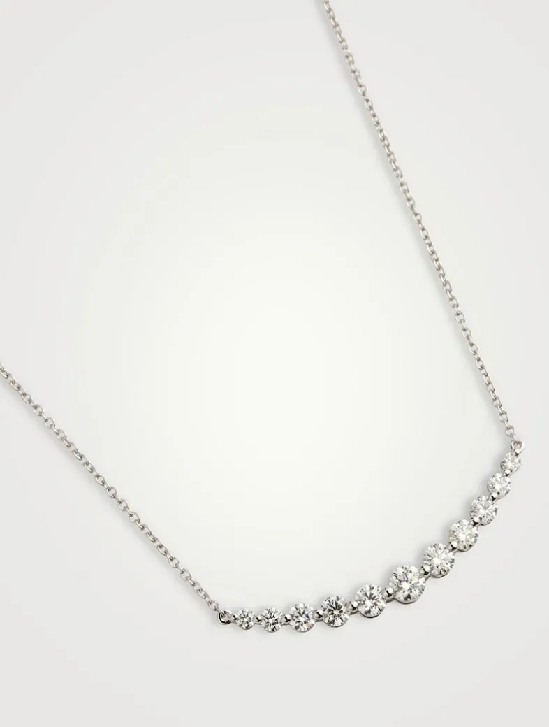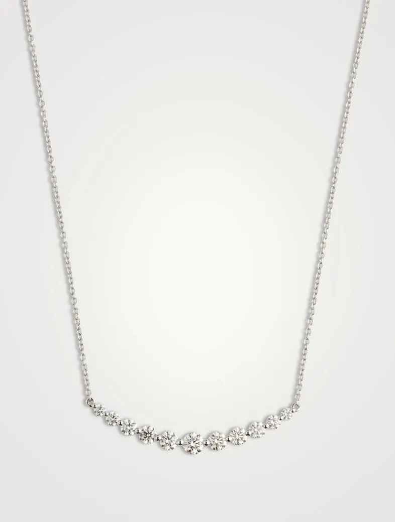 Skillfully crafted in 18k gold, this adjustable chain necklace features a curved bar of graduating diamonds.
