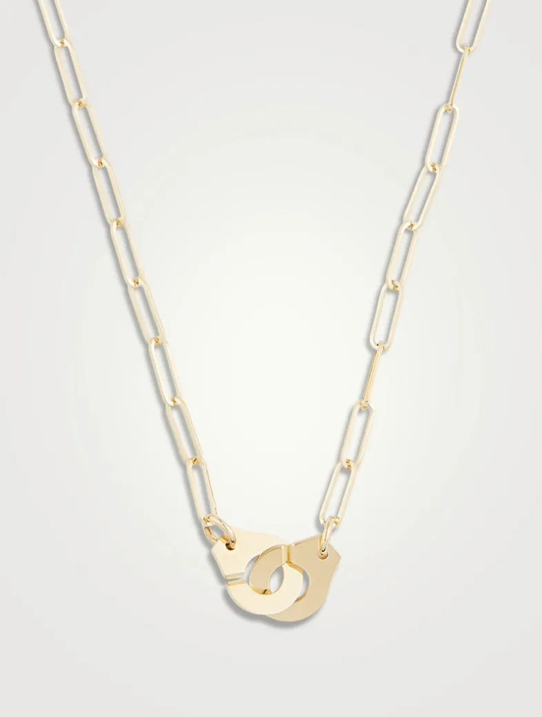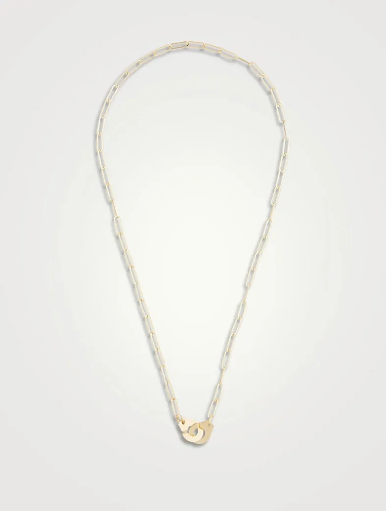 Created in 1976, the Menottes collection places Parisian jewellery brand’s clasp motif front and centre. Crafted with a paperclip chain, this necklace features a notched version of the signature DINH VAN clasp.
