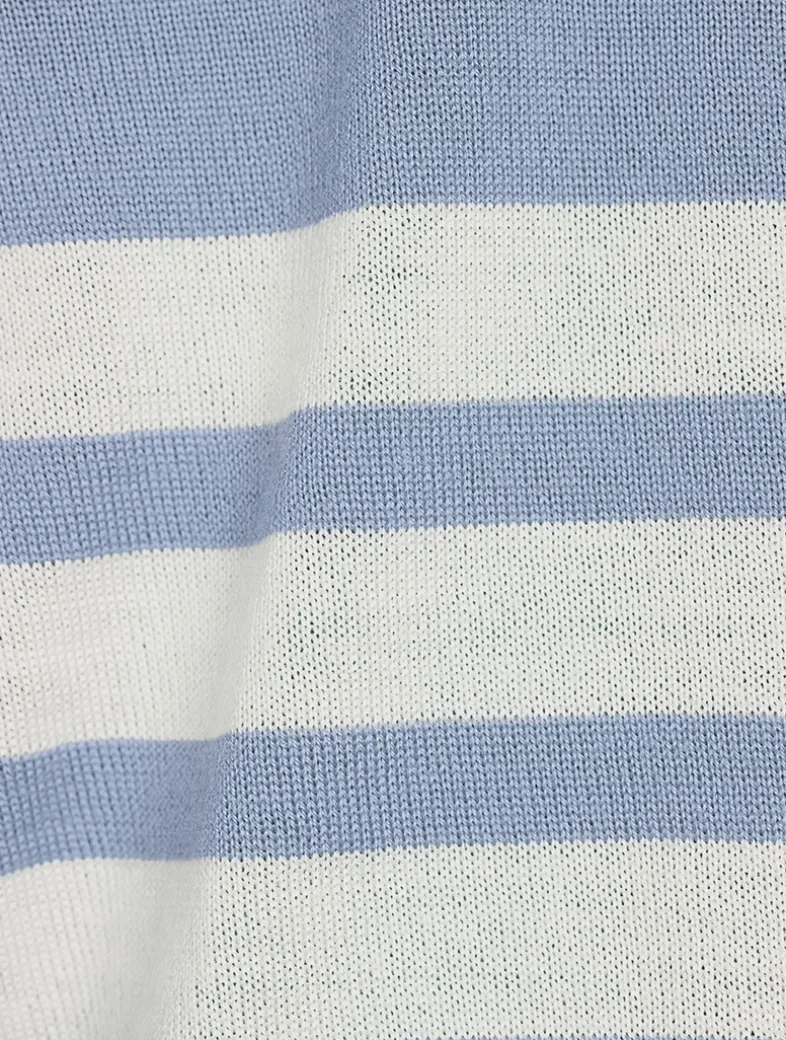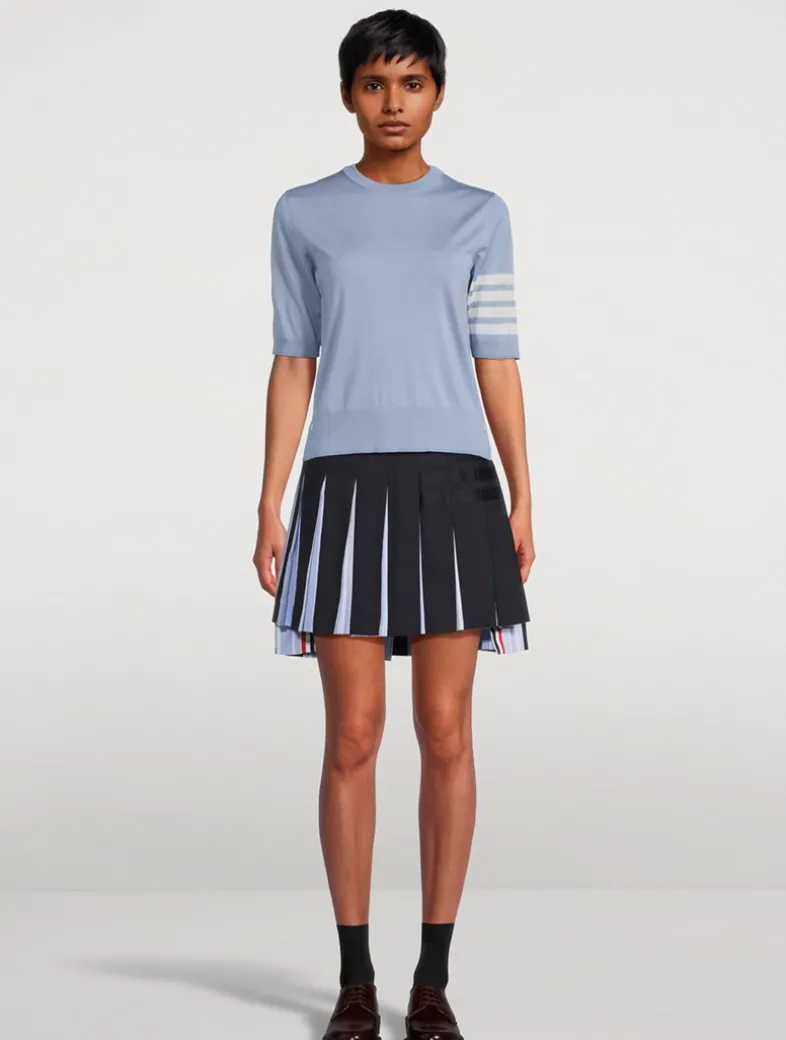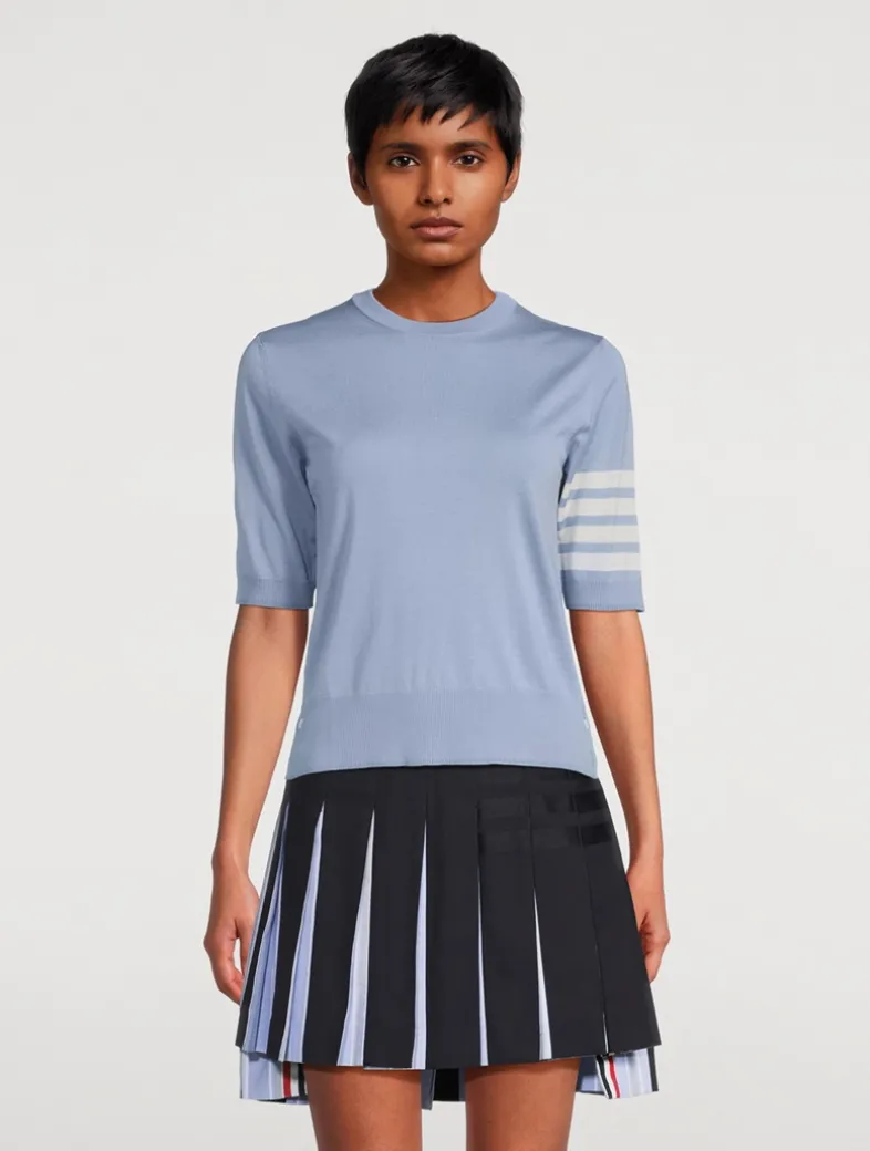 Cut in a slim silhouette, this short-sleeve pullover has a fine wool-blend construction with four-bar stripe detail at the left arm. Buttoned side vents highlighted with signature striped grosgrain trim.
