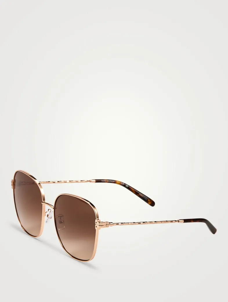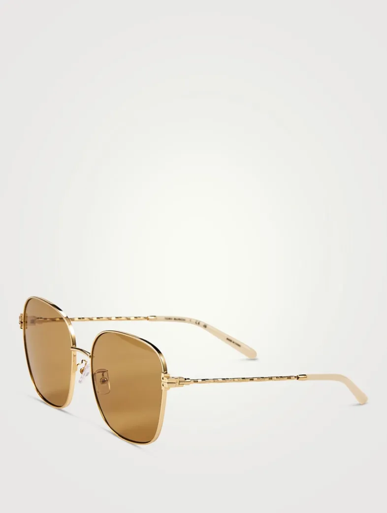 Designed in a flattering oversized shape, these square metal sunglasses are embellished with slender temples with a discreet Tory T at the hinges.