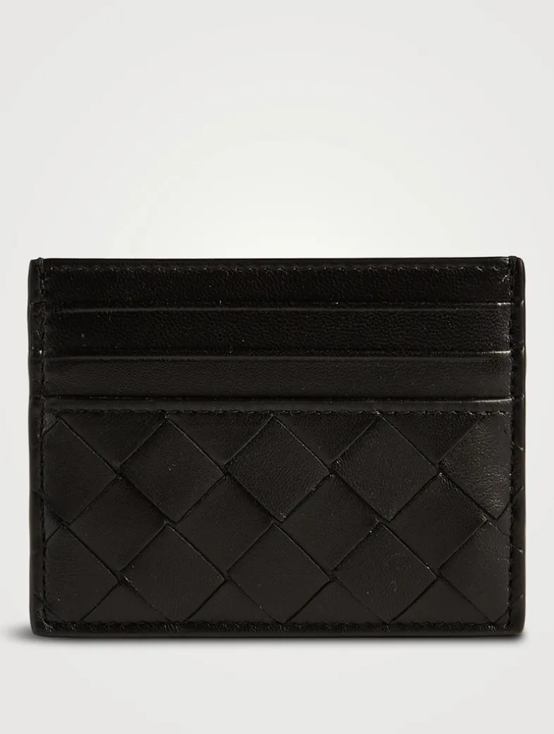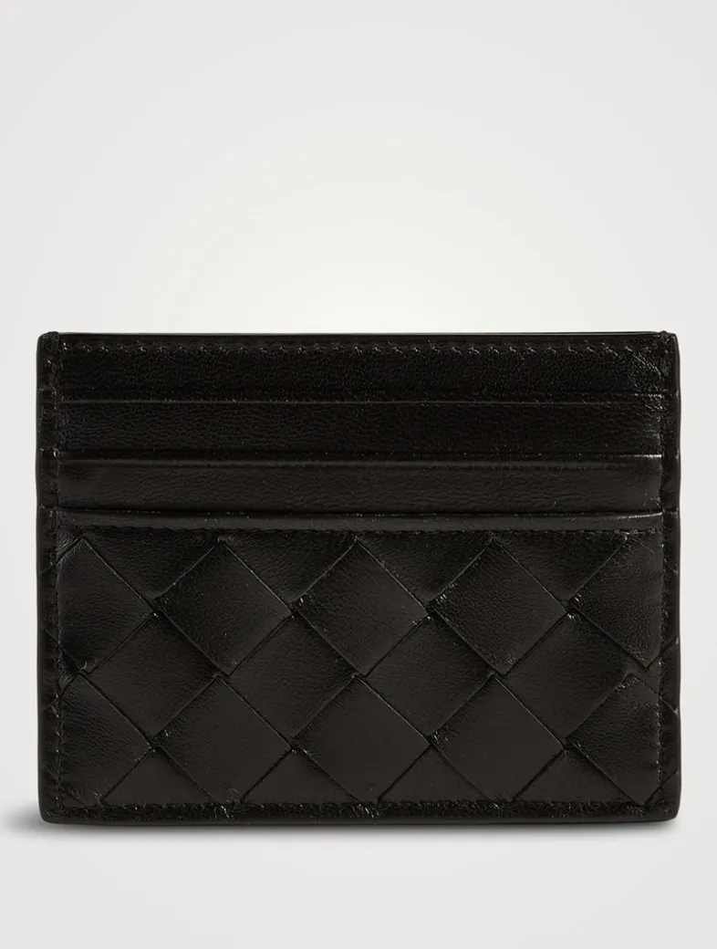 Flaunting a polished finish, this slim leather card holder showcases Bottega Veneta’s iconic weaving technique. It features six card slots and one middle pocket.