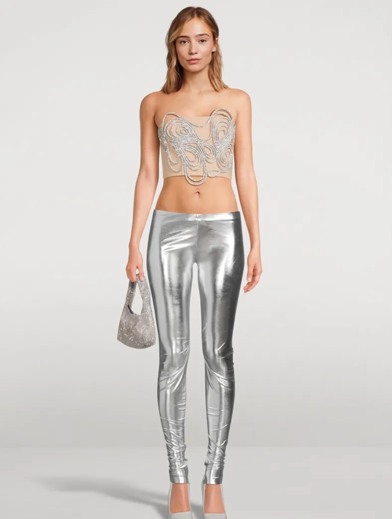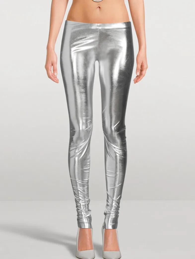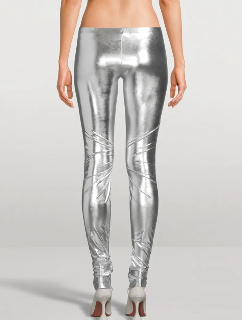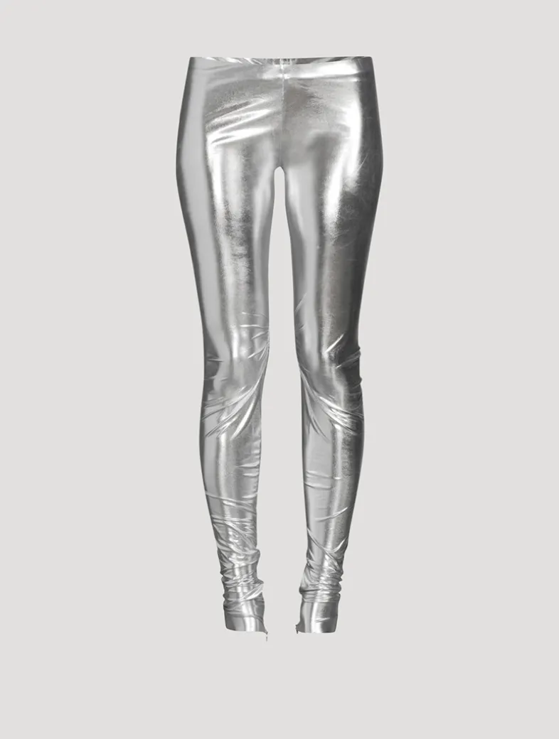 These leggings are made from sculpting metallic jersey for a second-skin fit with slight pleats from the knees. They have concealed zips on the inner side of the legs and an elasticated waistband for added comfort.