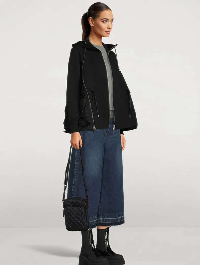 The Metro bag is a mini crossbody in quilted tech fabric, featuring a logo patch and contrasting trim in leather. The design is finished with an adjustable nylon strap.