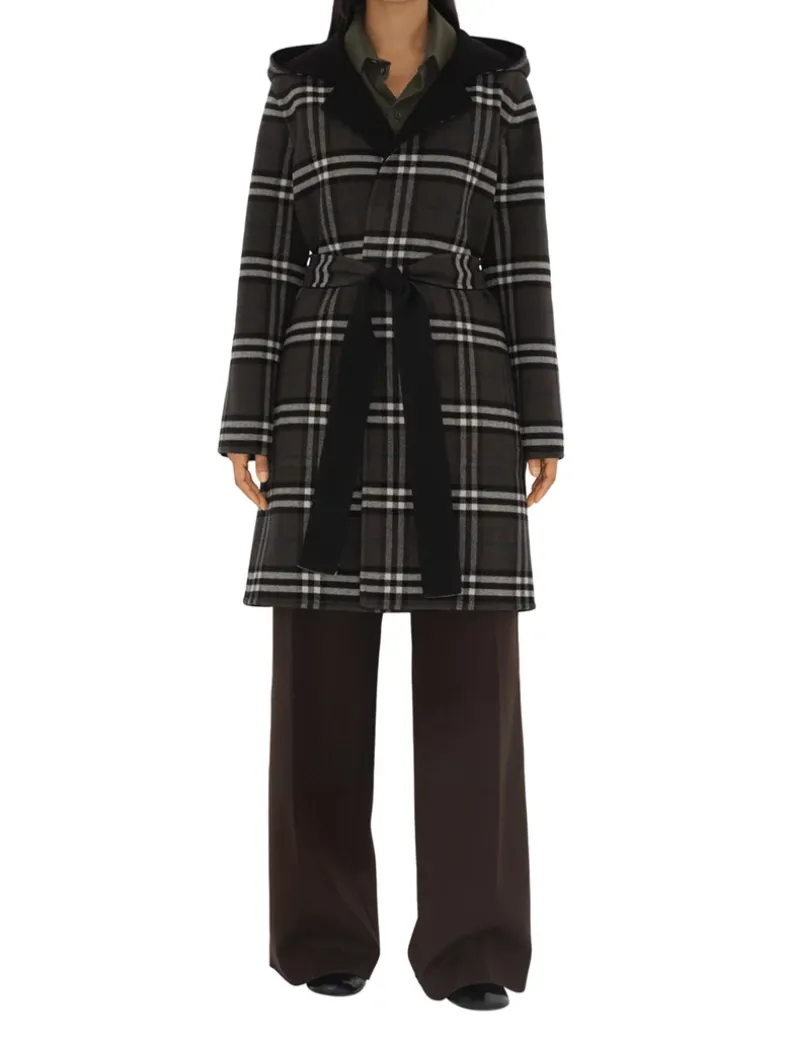A hooded car coat made in Italy from wool. The reversible design switches from a solid colour to the Burberry Check. Softly tailored to a regular fit with a belt to adjust the shape.
