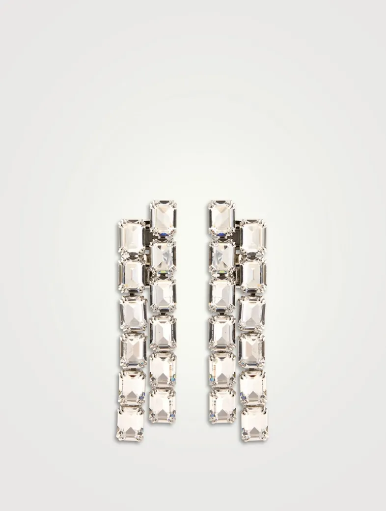 Crafted with rhodium plating these cascading clip earrings feature a double drop of clear octagon-cut crystals.