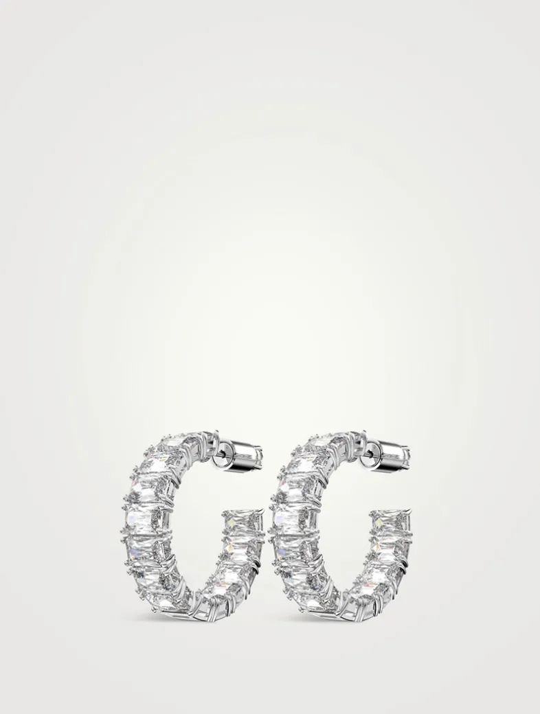 A classic hoop design with a dazzling twist, this elegant pair of crystal earrings features a uniform row of octagon-cut stones cradled in a fine, rhodium-plated frame. These earrings are part of the Millenia family, designed by Creative Director Giovanna Engelbert for Collection III.