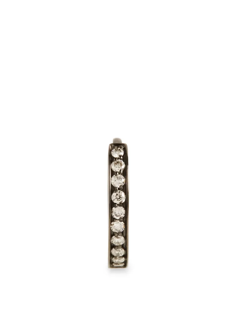 Berbère features the repetition of a minimalist gold line to be worn as a second skin. This 18k gold mini earring is designed with a single-row silhouette with pavé diamonds and a pin fastening.