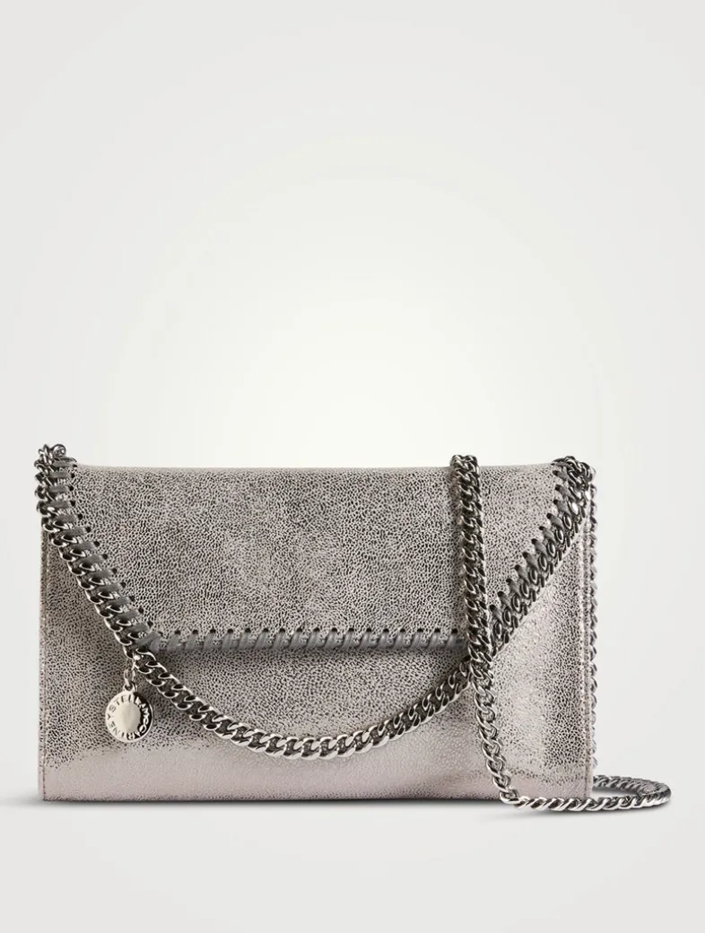 A playful and versatile update of a classic, this Falabella wallet brings a mood-lifting effect to your wardrobe. The envelope wallet-shaped bag is framed by the iconic diamond-cut Falabella chain that extends into a crossbody shoulder strap.