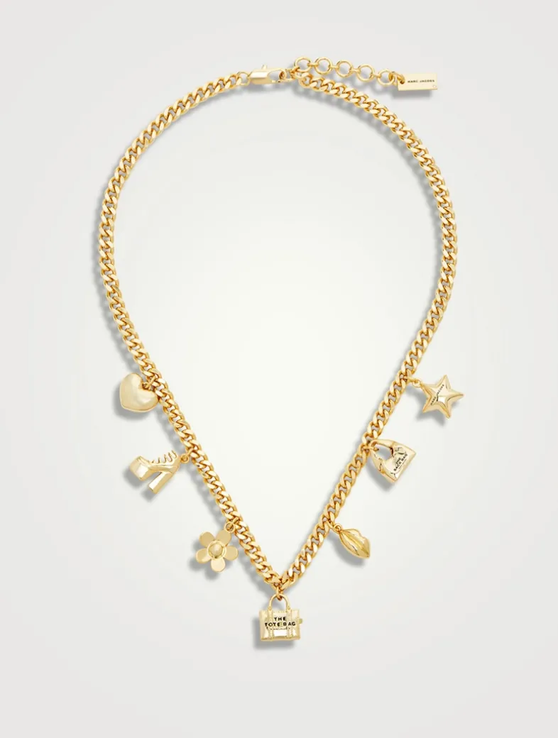 With charms designed after their signature tote bag and more, this adjustable necklace features the iconic Marc Jacobs styles reimagined into dainty charms along a thick curb chain.