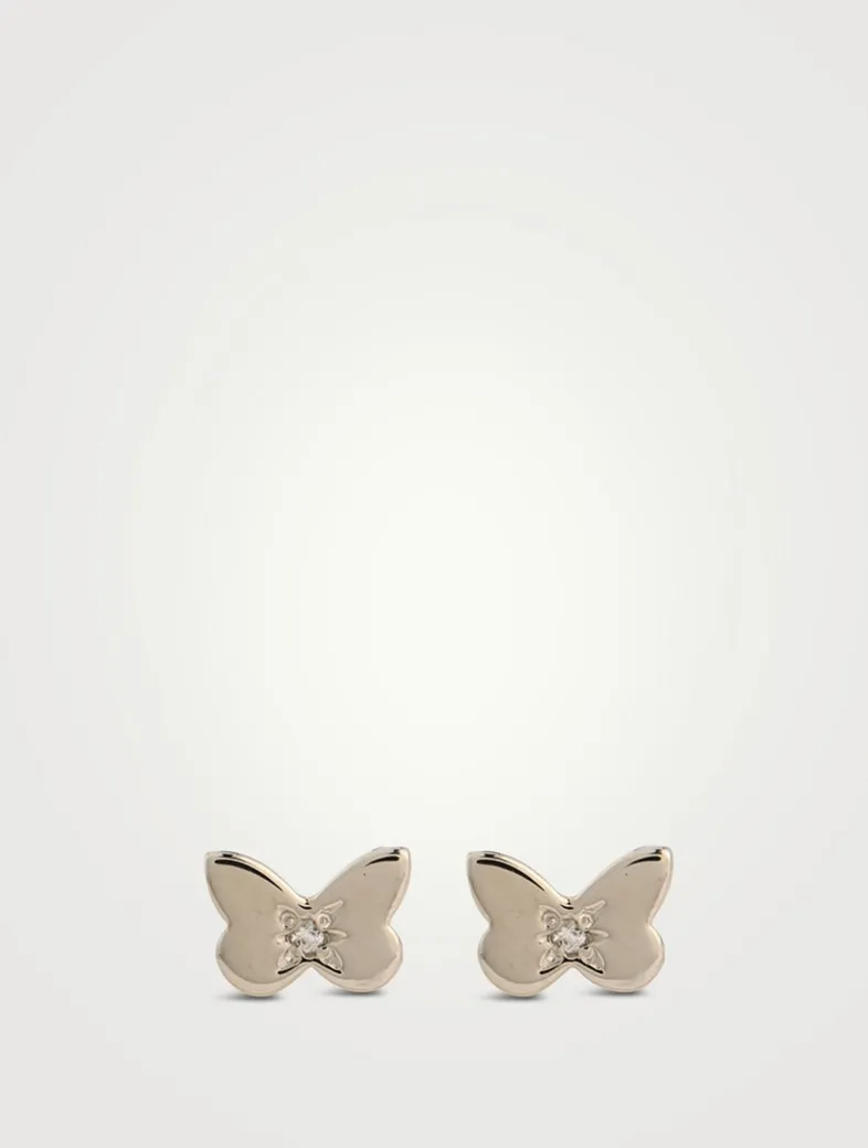 This pair of mini silver butterflies encrusted with sapphires and mounted on silver posts makes the ideal complement to your ear stack or can be worn alone.