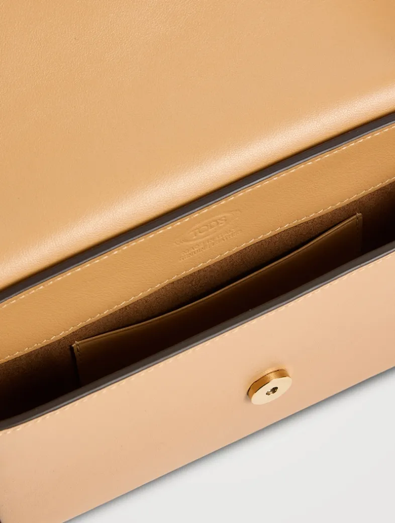 This mini flap bag, presented here in refined calfskin leather, is designed with branded metal bar accessory. Featuring a metal chain strap with branded slider, it is a versatile and elegant creation.