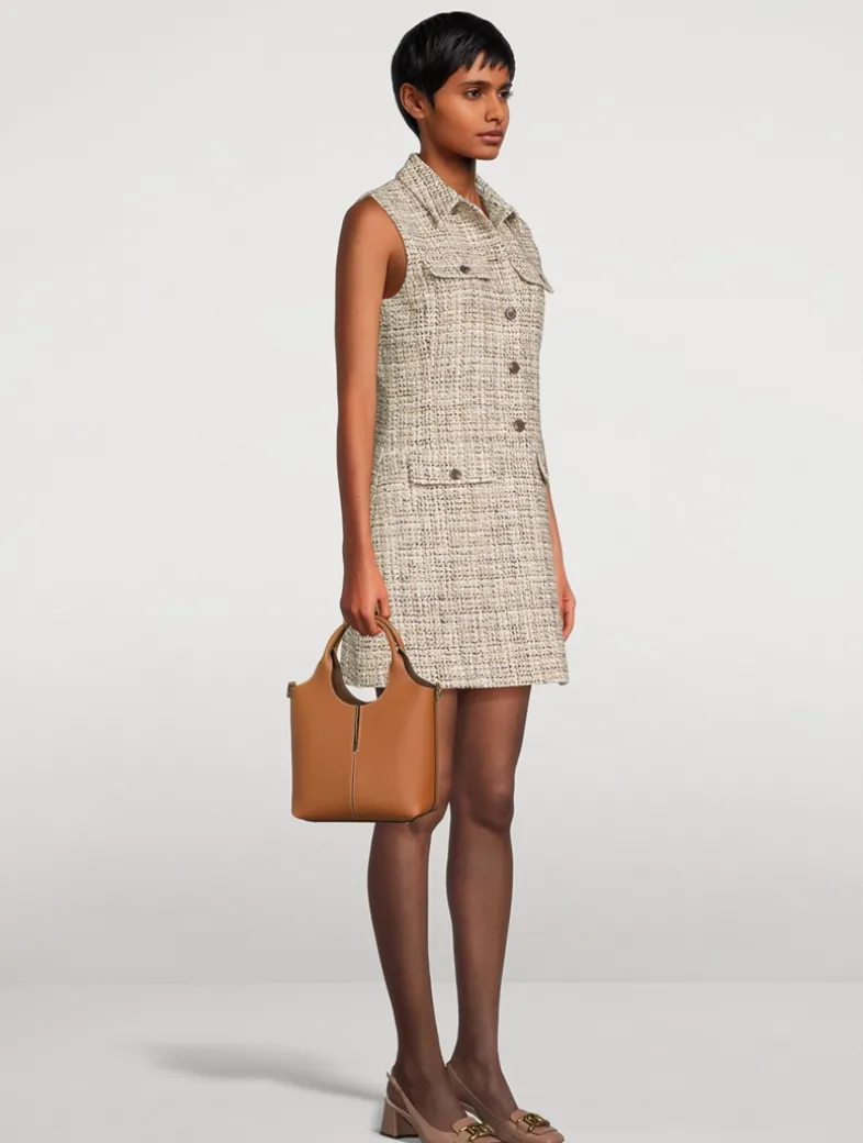 Featuring central ribbing and metal bar with stamped Tod’s logo, this bag has double fixed handles, an adjustable strap, and two metal side rings.