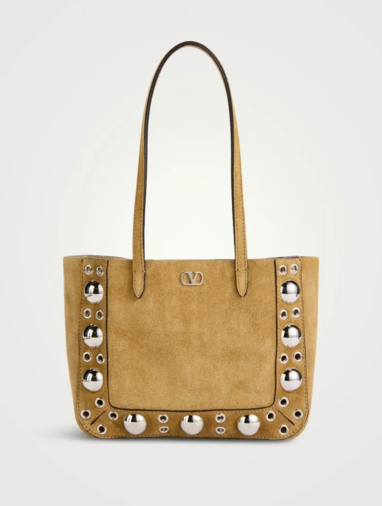 Blending luxe detailing with bohemian elements, the Nellcôte suede shoulder bag is decorated with ball studs and rivets. It has a set of handles and an interior zip pocket.