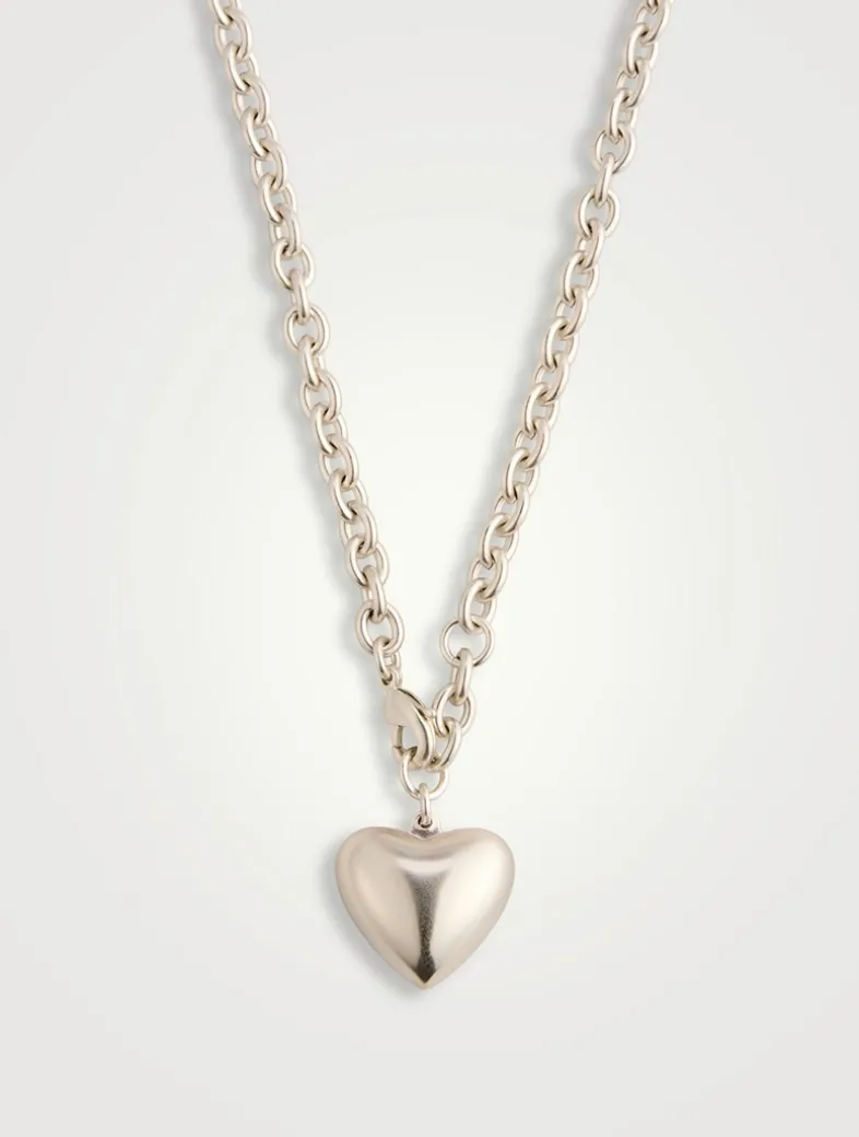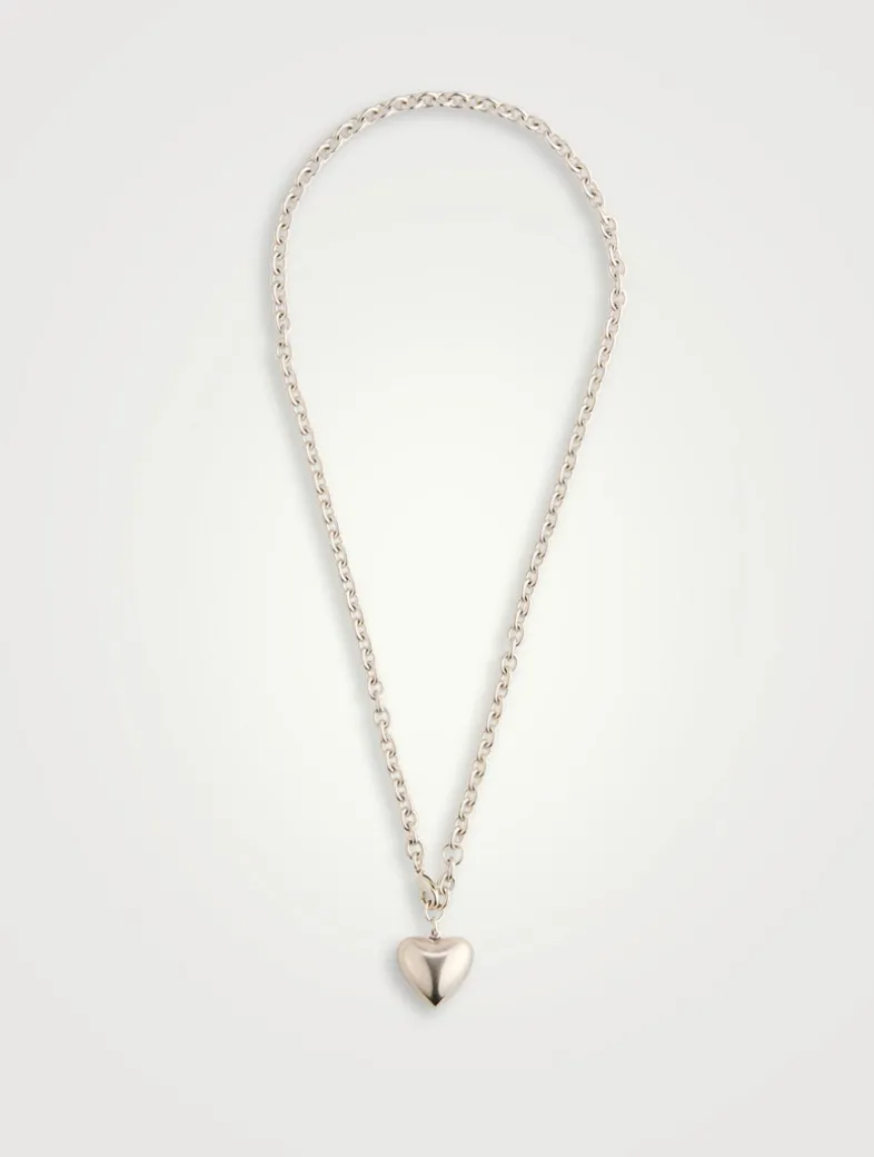 Enhanced with a silver-tone finish, this mini chain necklace is adorned with the brand’s signature puffy heart. The lobster closure can be adjusted to create a drop silhouette.