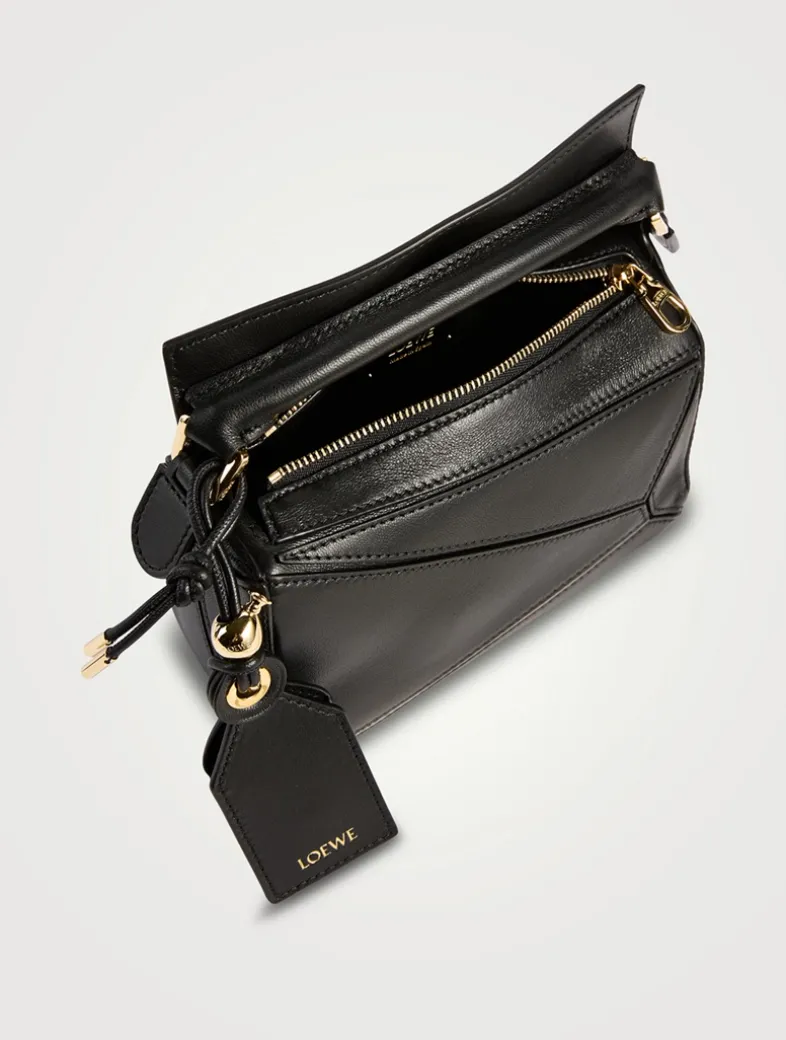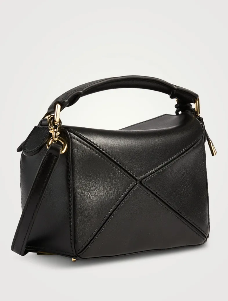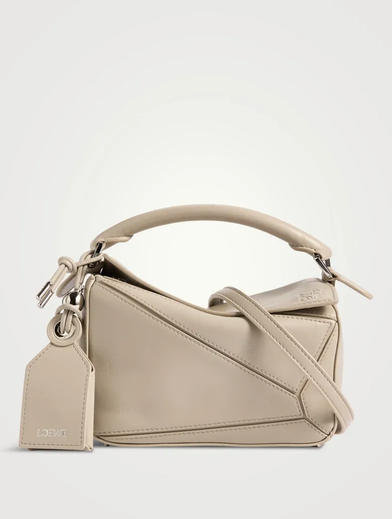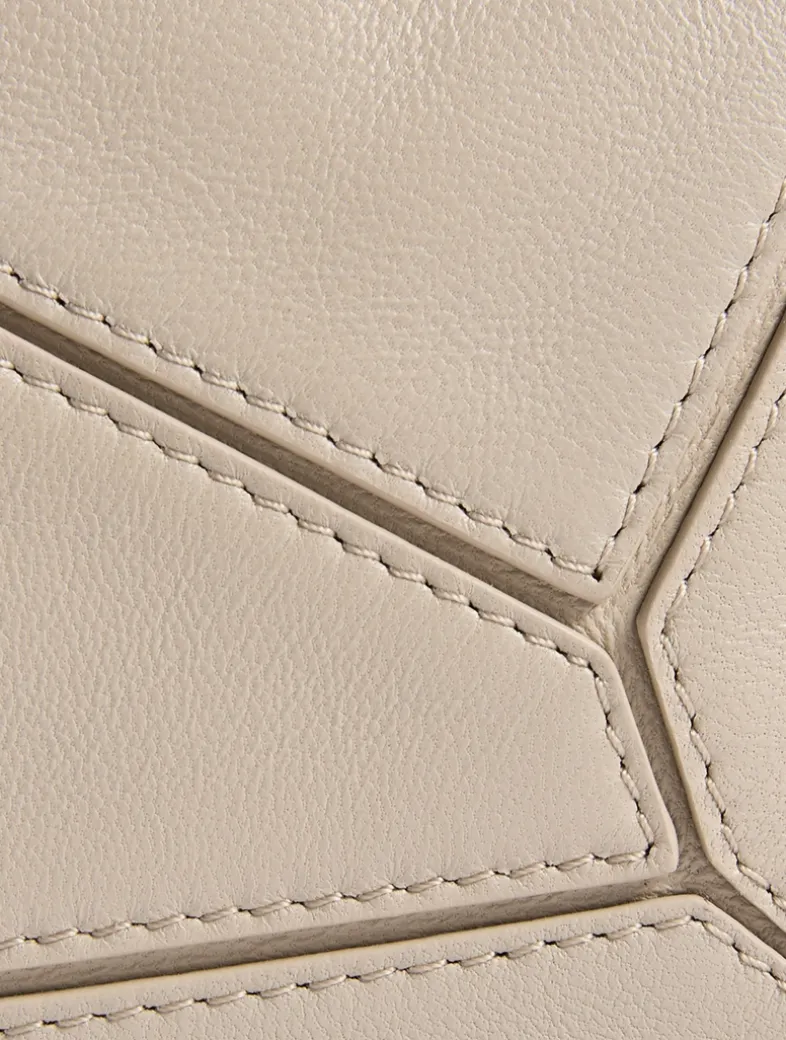 The Puzzle is defined by its distinctive geometric lines and its cuboid form. This mini version is crafted in smooth calfskin with a detachable and adjustable strap for shoulder, crossbody, or hand carry.