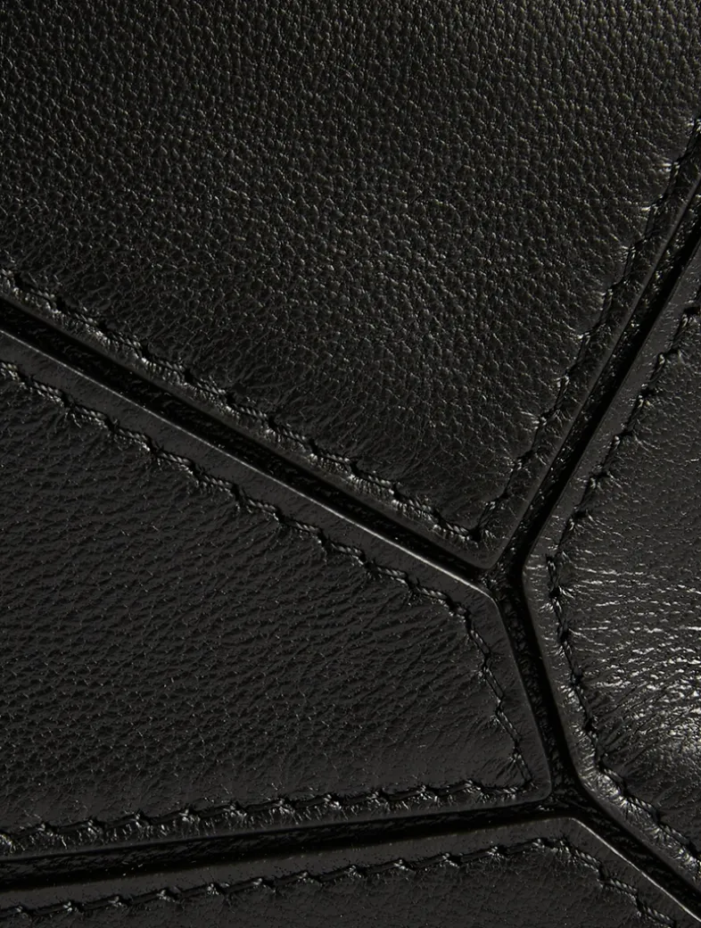 The Puzzle is defined by its distinctive geometric lines and its cuboid form. This mini version is crafted in smooth calfskin with a detachable and adjustable strap for shoulder, crossbody, or hand carry.