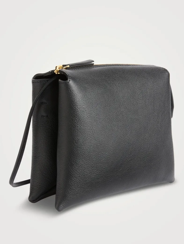 Softly structured shoulder bag in buttery leather with a seamless construction, removable adjustable shoulder strap, and zip top closure. Two interior compartments complete the look.