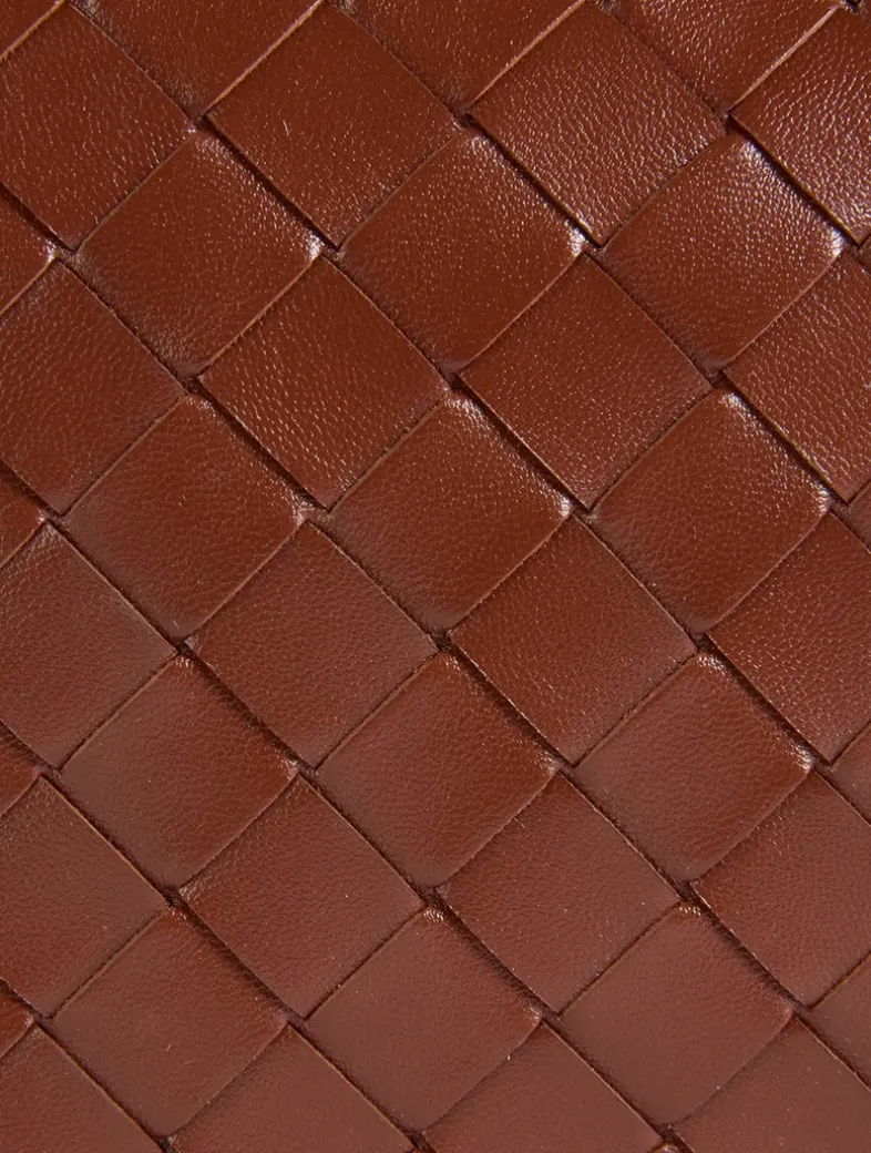 An adjustable shoulder strap lends a versatile touch to this slouchy bag. Topped with a zippered closure, it is crafted of buttery-soft leather in an intricately woven design.
