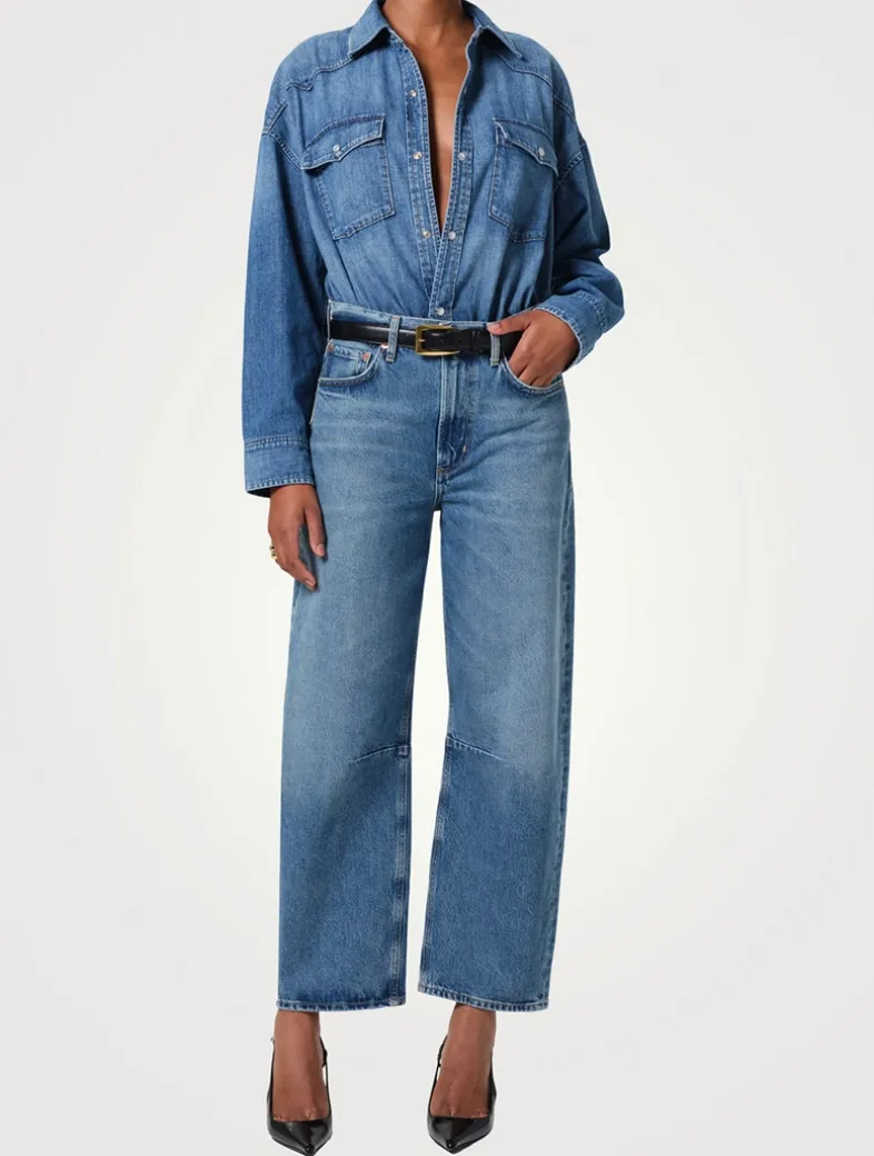 The Miro reworked jean has a slightly relaxed top block and offers tapered take on the barrel-leg silhouette. Crafted from a non-stretch rigid regenerative cotton with a vintage hand feel. This product is made with regenerative cotton from Citizens of Humanity Group’s Regenerative Cotton Program. The program collaborates closely with farmers both domestically and internationally, nurturing growth, fostering education, and encouraging the widespread adoption of regenerative agricultural practices.