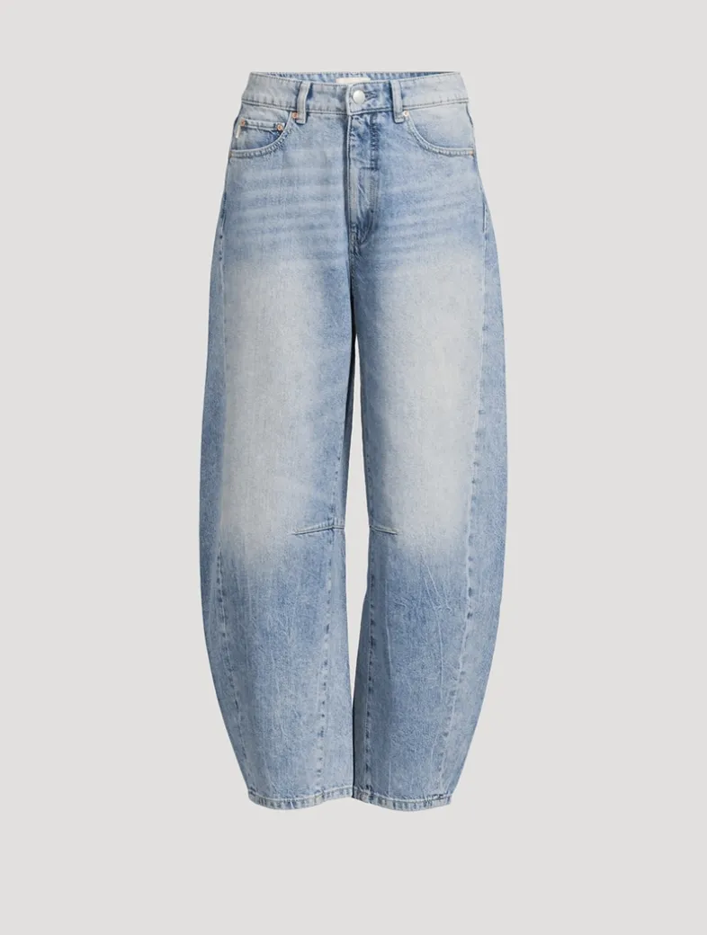 Miro is a high-rise, voluminous barrel-leg jean that is fitted at the hip and hits at an ankle length with a tapered leg. Made of stretch denim in a light wash with a vintage feel. HIGHLUXE™ combines the authentic look of vintage, rigid denim with regenerative fibers and certified cotton for an incomparable, ultra-soft feel.