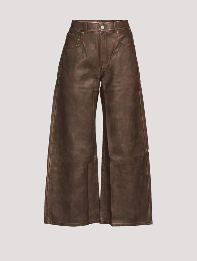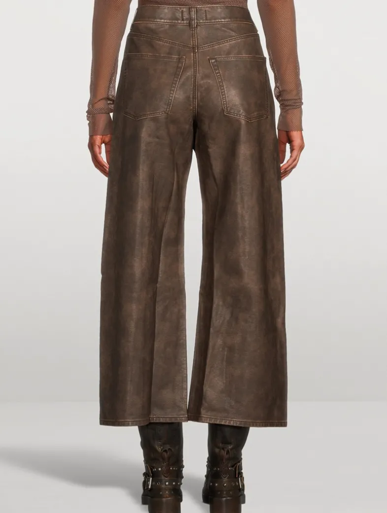 These pants from the We The Free collection features a vegan leather fabrication and loose barrel-leg silhouette. Cut to a mid-rise fit, it has a zipper fly and five-pocket styling.
