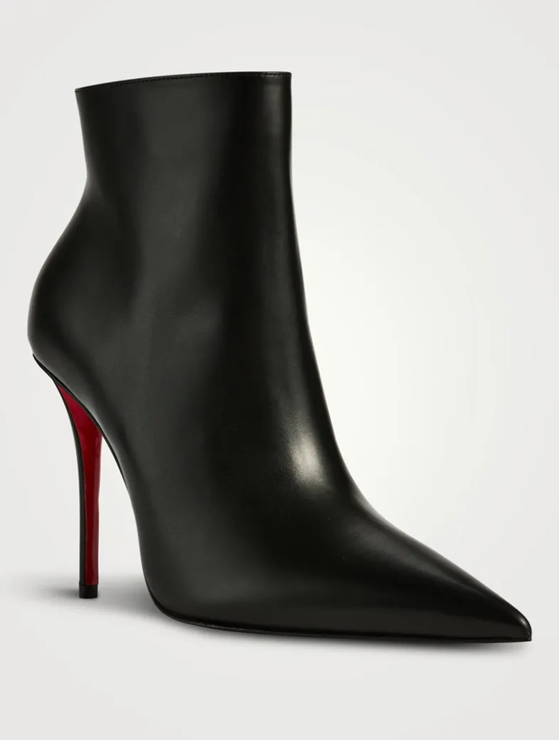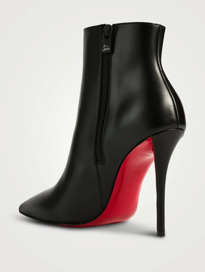The Miss Z is an elegant ankle boot sculpted in a timeless design with a daring pointed toe that expresses Maison Christian Louboutin’s iconic savoir-faire. Set on a 100mm cleverly designed stiletto heel that appears higher than it is, the Miss Z is crafted from calf leather and features a fully padded insole. This model features a new ‘Everlasting Red’ sole thanks to an innovative coating technique that ensures resistance and lasting vibrancy for the signature Louboutin red.