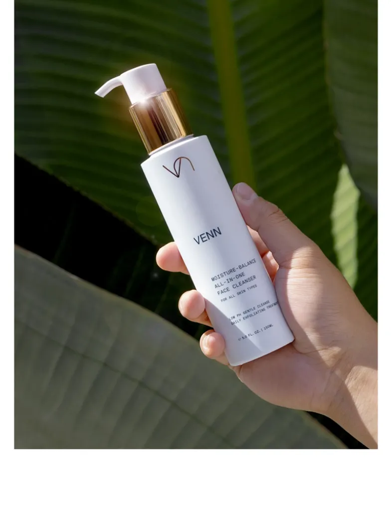 Low-pH, multi-tasking, non-foaming facial cleanser that, in one simple step, deeply cleanses the skin, including pores and wrinkles, removes makeup and any buildup on the skin, and gently exfoliates the skin, while instantly hydrating the skin. This innovative cleanser is a quasi-semi-emulsion type that uses humectants with particle sizes that are 5-10 times smaller than the average size of facial pores to cleanse the skin deeply and effectively while keeping the skin hydrated and soft.
