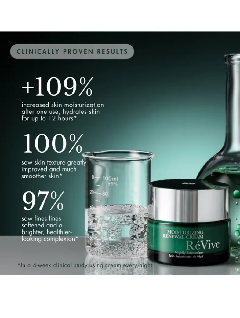 Powered by Powered by Bio-Renewal Technology and featuring Glycolic Acid, this powerful, perfecting RÉVIVE Moisturizing Renewal Cream gently exfoliates, retextures, renews and moisturizes facial skin. Its unique formula works overtime as you sleep, to help eradicate imperfections and visibly diminish fine lines for a morning awakening to fresher, glowing, more beautiful skin.
