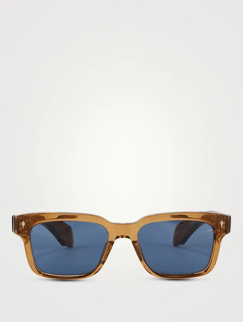 An iconic Jacques Marie Mage style, these rectangular ’60s-inspired glasses feature subtle beveling and the brands signature precious metal embellishments.