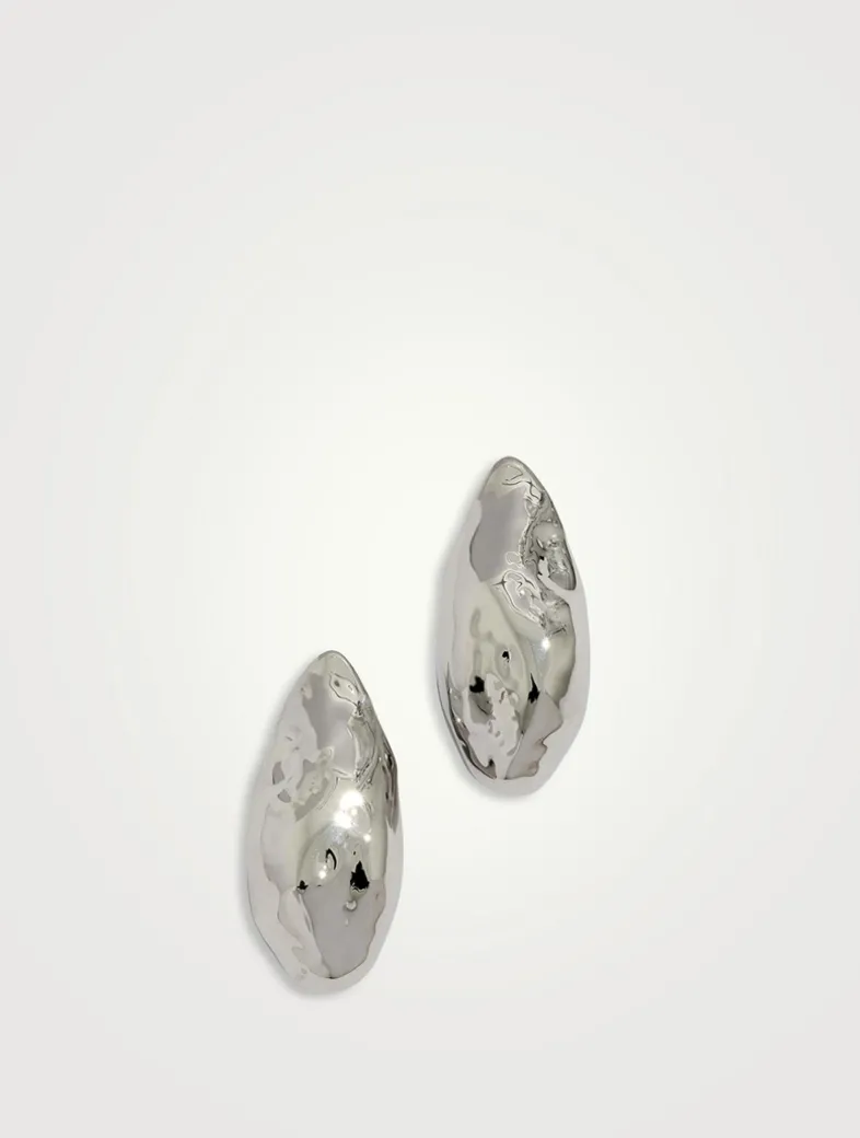 In an oversized, puffy silhouette, these sculpted molten silver tone plated earrings play with volume and reflect light from each curve.