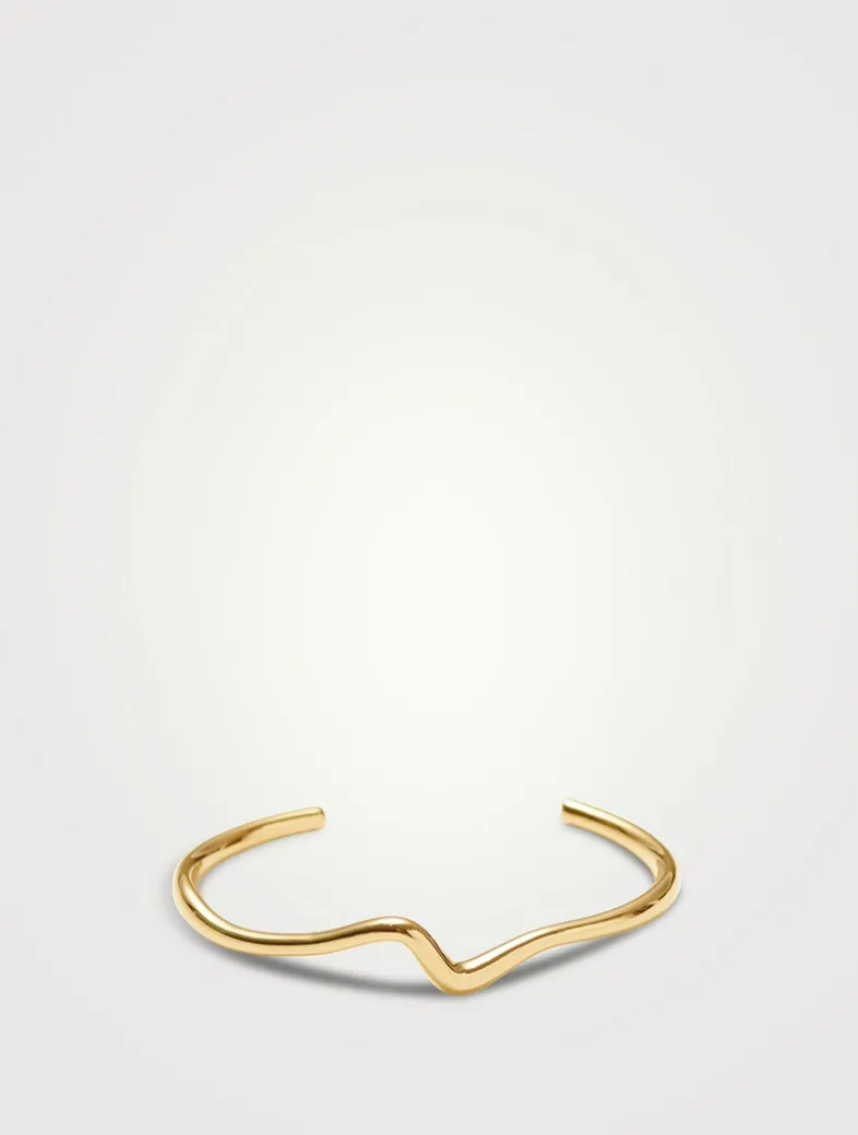 Make it molten. This simple cuff bracelet has an organic shape with wavy detailing. Designed to slide on easily, wear solo or pair with chunky chains to create a bold arm stack.